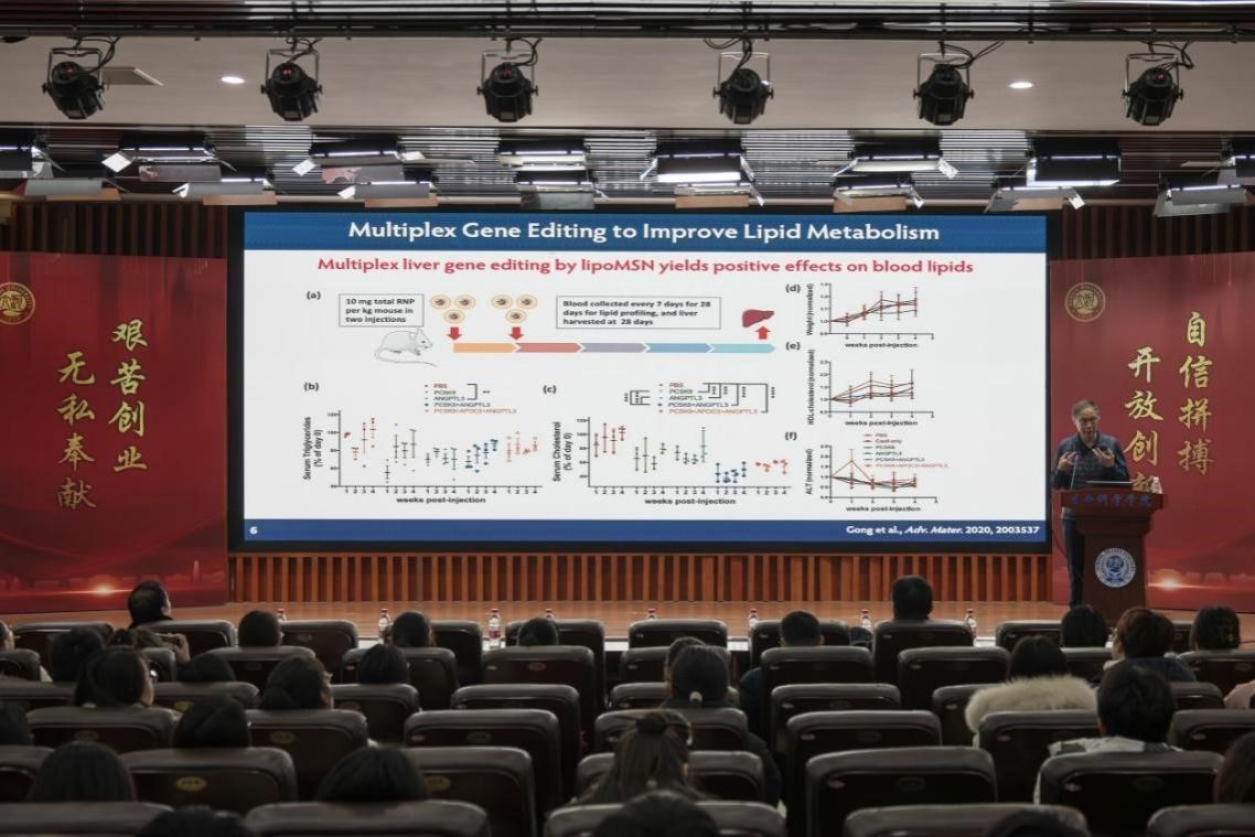 2月29日,哥伦比亚大学梁锦荣(Kam W. Leong)院士受邀在生命科学学院圆形报告厅作题为“Nonviral and Viral Vectors forIn Vivo Gene Editing”的学术报告。华南理工大学邵丹研究员、yl7703永利官网学术副校长崔大祥教授、化学与分子科学学院院长陈永明教授、生命科学学院白文龙教授、方敏教授、Exploration副主编北京化工大学刘惠玉教授、中国科学院生物物理研究所范克龙研究员、上海大学陈雨教授、哈佛大学医学院陶伟教授、南洋理工大学颜清宇教授及期刊其他副主编、学术编辑、海内外专家共计约5000人参加报告会。本次报告会采用线下+线上直播形式。
