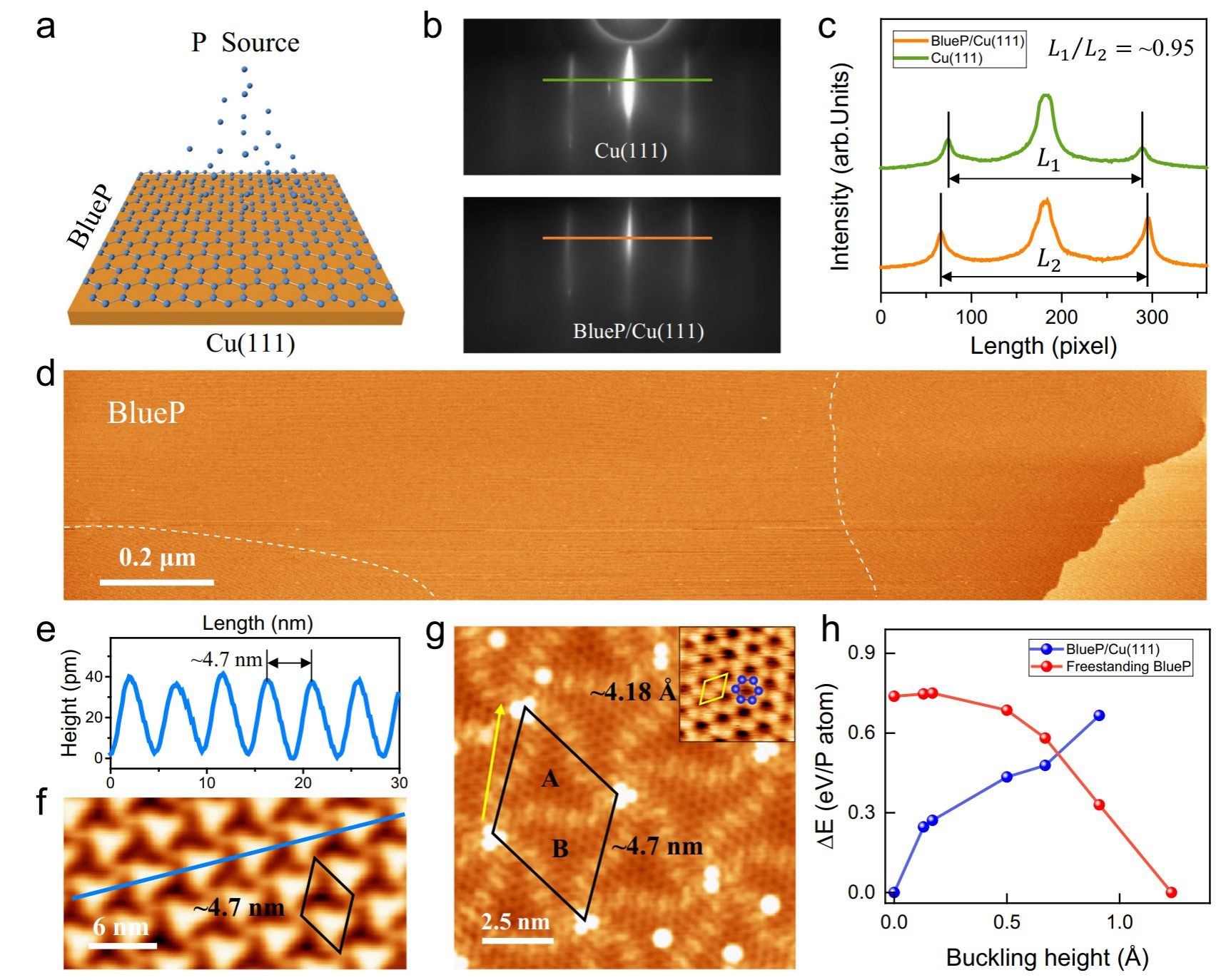图1 在Cu(111)衬底上外延生长的超平坦手性蓝磷烯