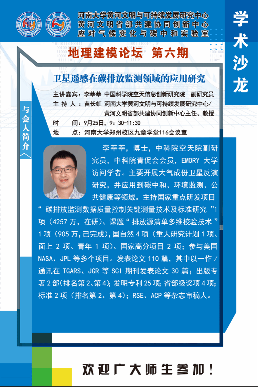 李莘莘:卫星遥感在碳排放监测领域的应用研究(时间:9月25日)
