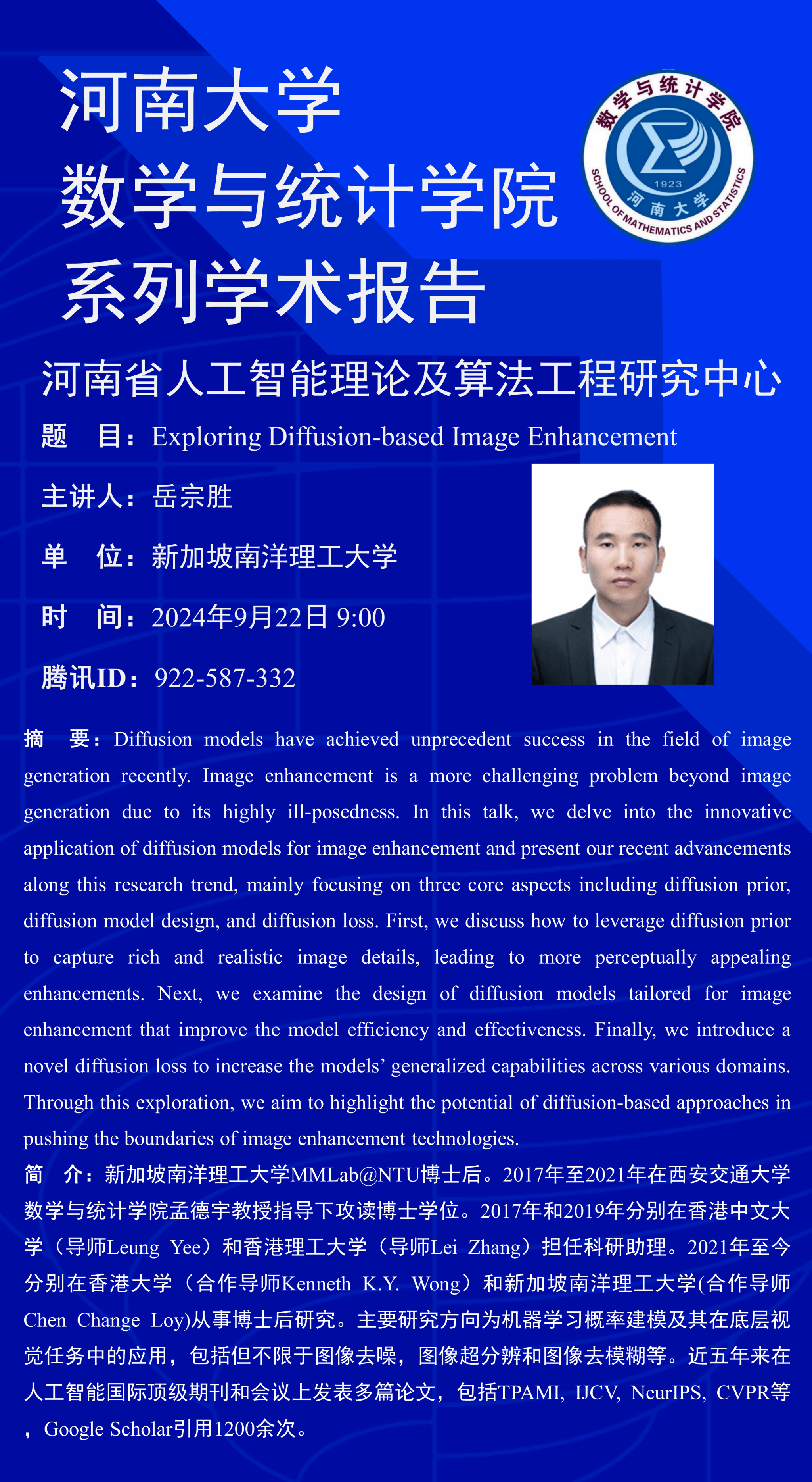岳宗胜:Exploring Diffusion-based Image Enhancement(时间:9月22日)