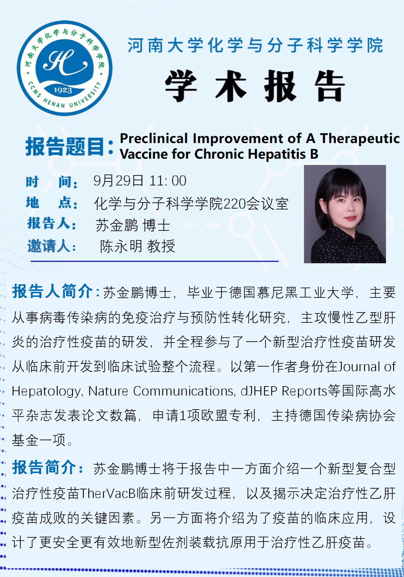 苏金鹏:Preclinical Improvement of A Therapeutic Vaccine for Chronic Hepatitis B(时间:9月29日)