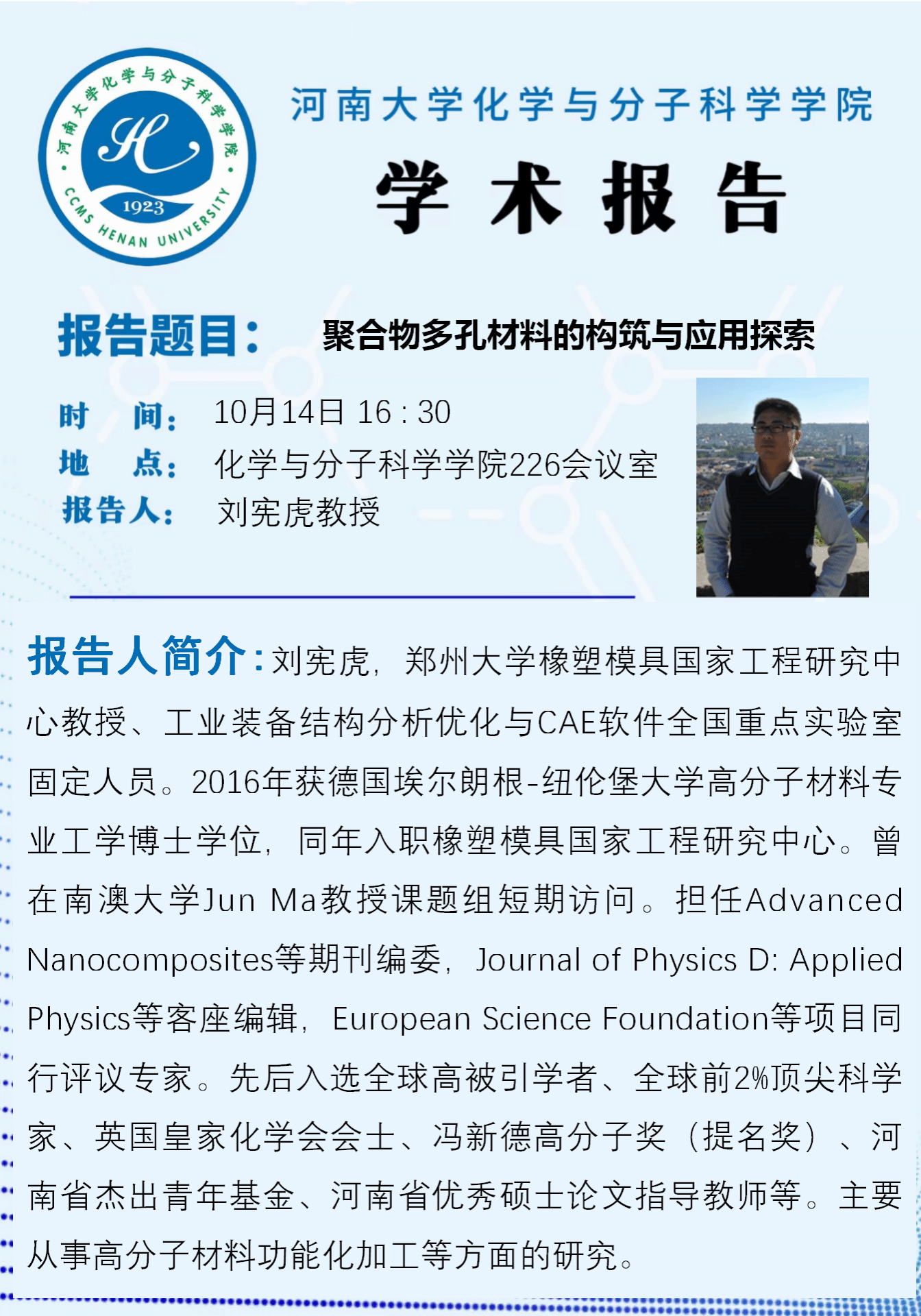 刘宪虎:聚合物多孔材料的构筑与应用探索(时间:10月14日)