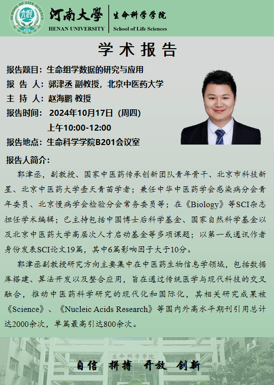 郭津丞:生命组学数据的研究与应用(时间:10月17日)