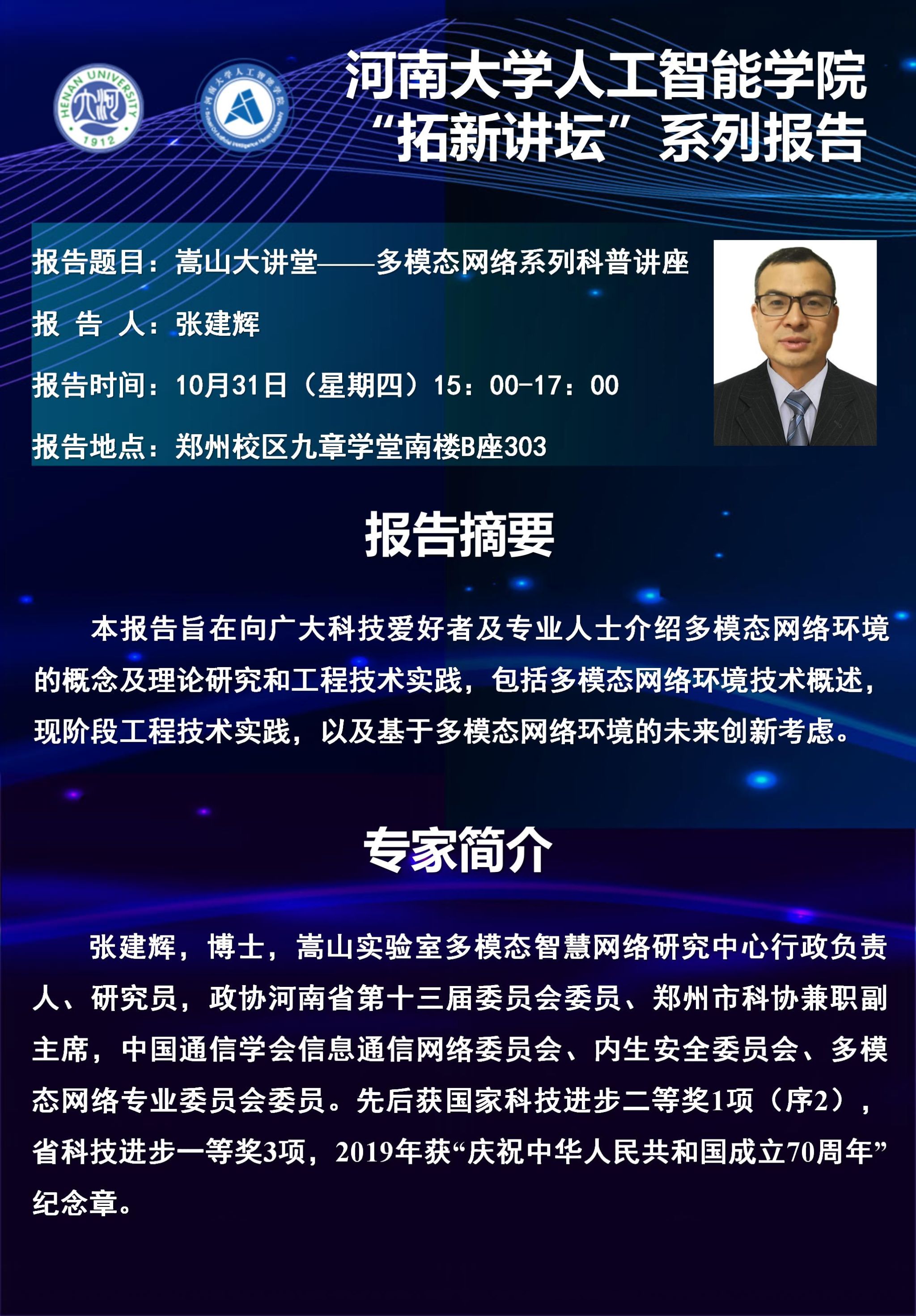 张建辉:嵩山大讲堂——多模态网络系列科普讲座(时间:10月31日)