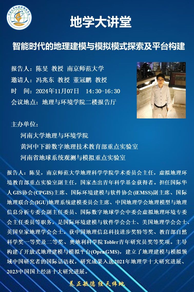 陈旻:智能时代的地理建模与模拟模式探索及平台构建(时间:11月7日)