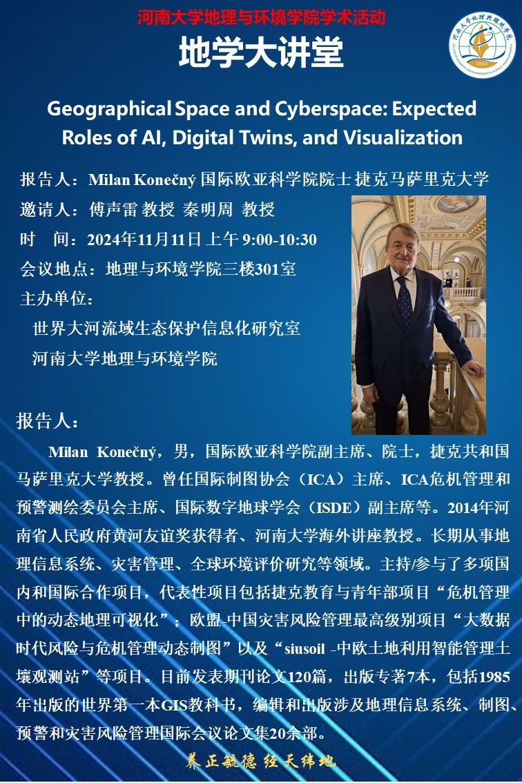 Milan Konečný :Geographical Space and Cyberspace: Expected Roles of AI, Digital Twins, and Visualization(时间:11月11日)