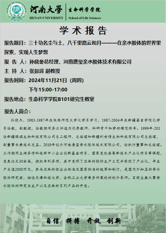 孙晓冬:三十功名尘与土,八干里路云和月在亲水胶体的世界里探索,实现人生梦想(时间:11月21日)