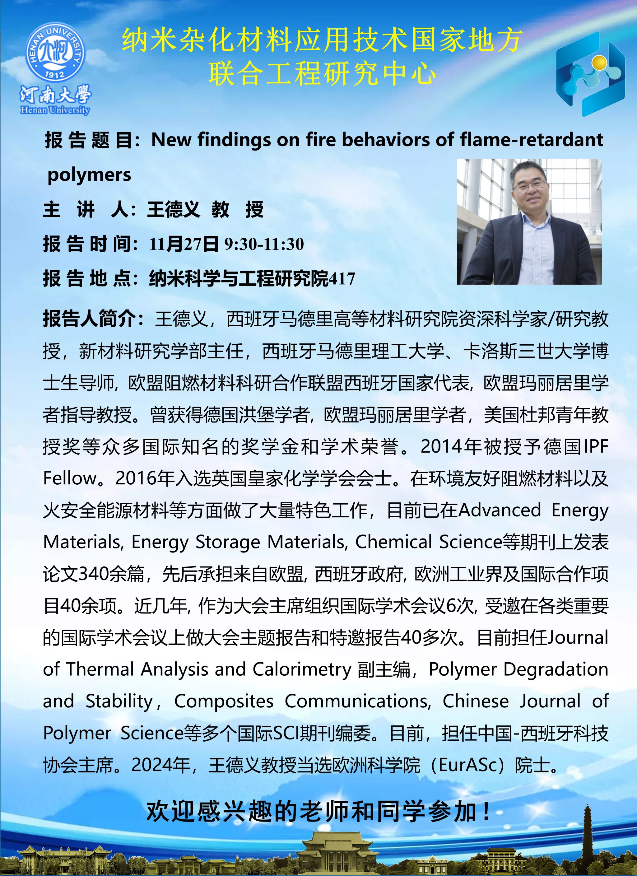 王德义:New findings on fire behaviors of flame-retardant polymers (时间:11月27日)