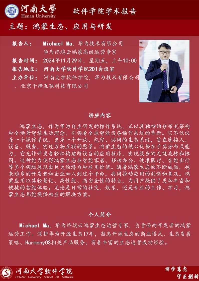 Michael Ma:鸿蒙生态、应用与研发(时间:11月29日)