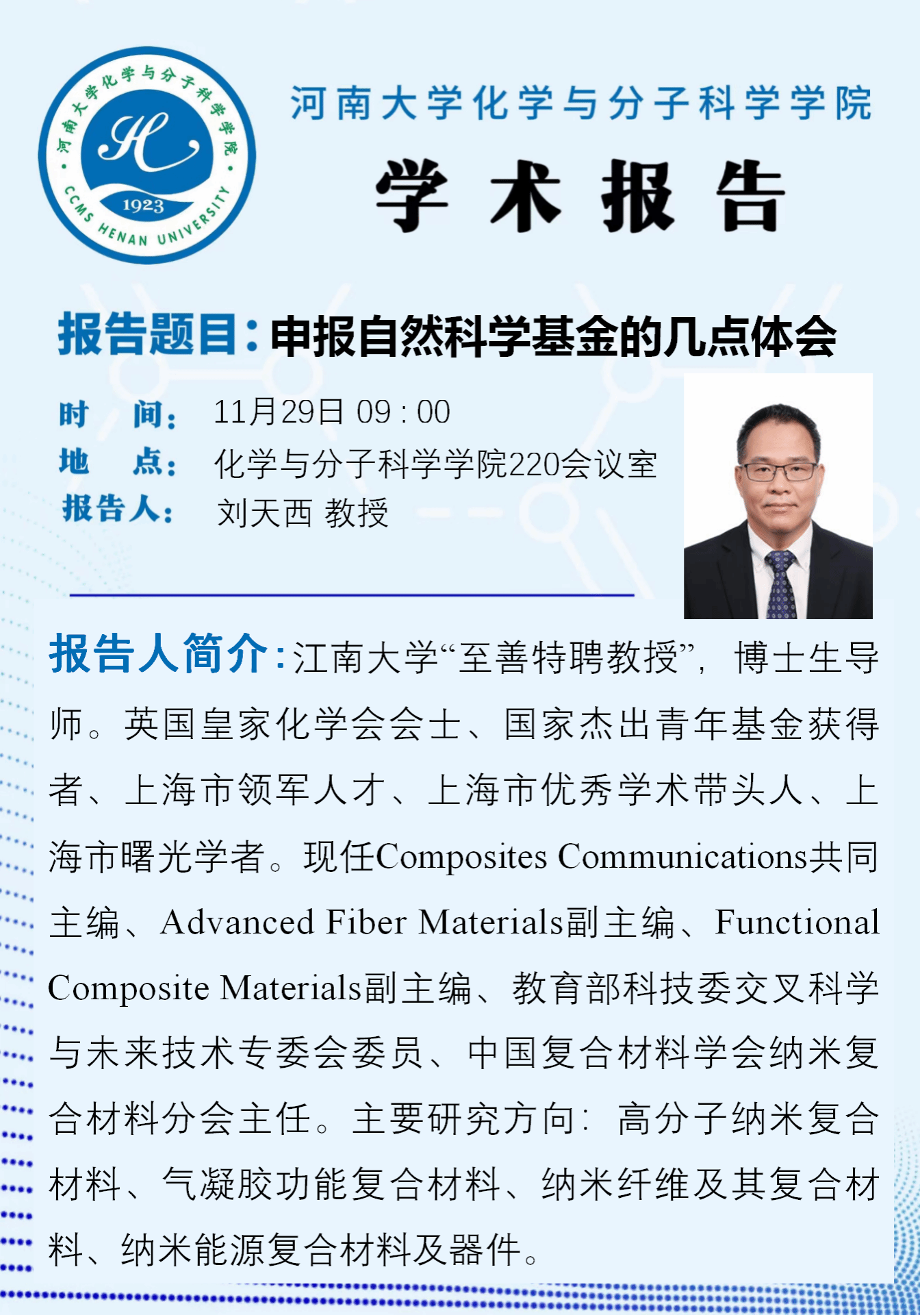 刘天西:申报自然科学基金的几点体会(时间:11月29日)
