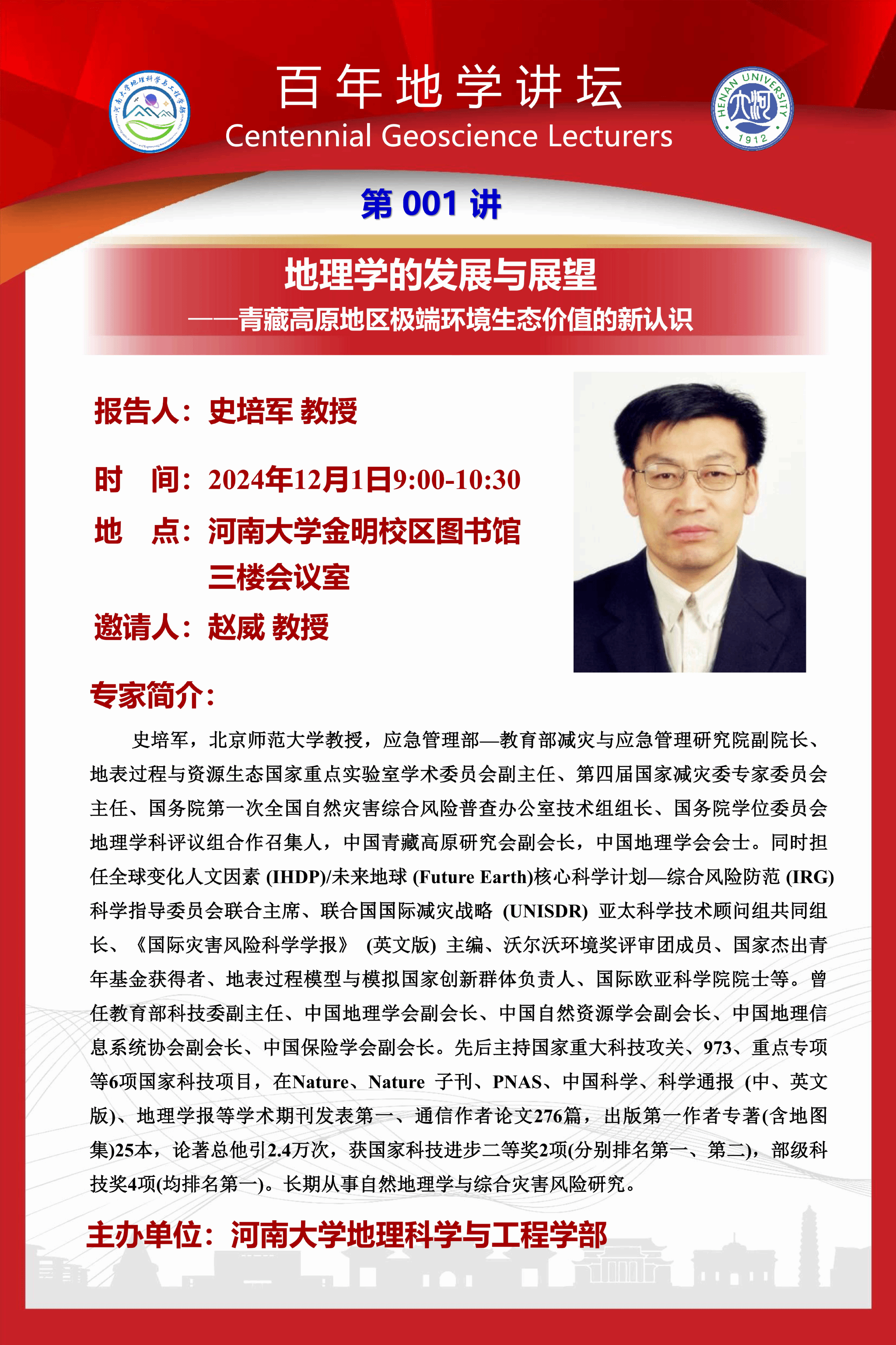 史培军:地理学的发展与展望——青藏高原地区极端环境生态价值的新认识(时间:12月1日)