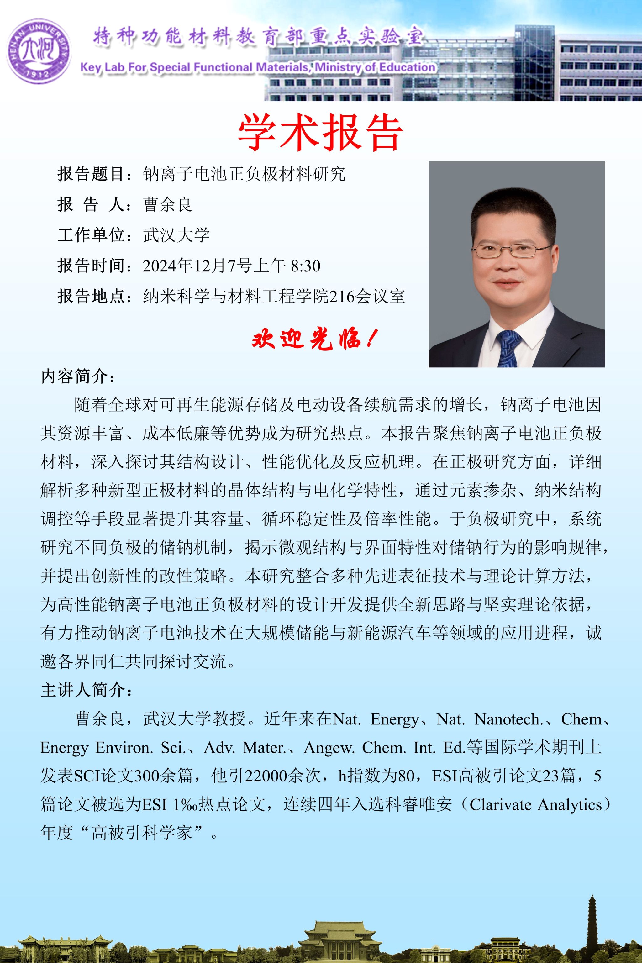 曹余良 :钠离子电池正负极材料研究(时间:12月7日)