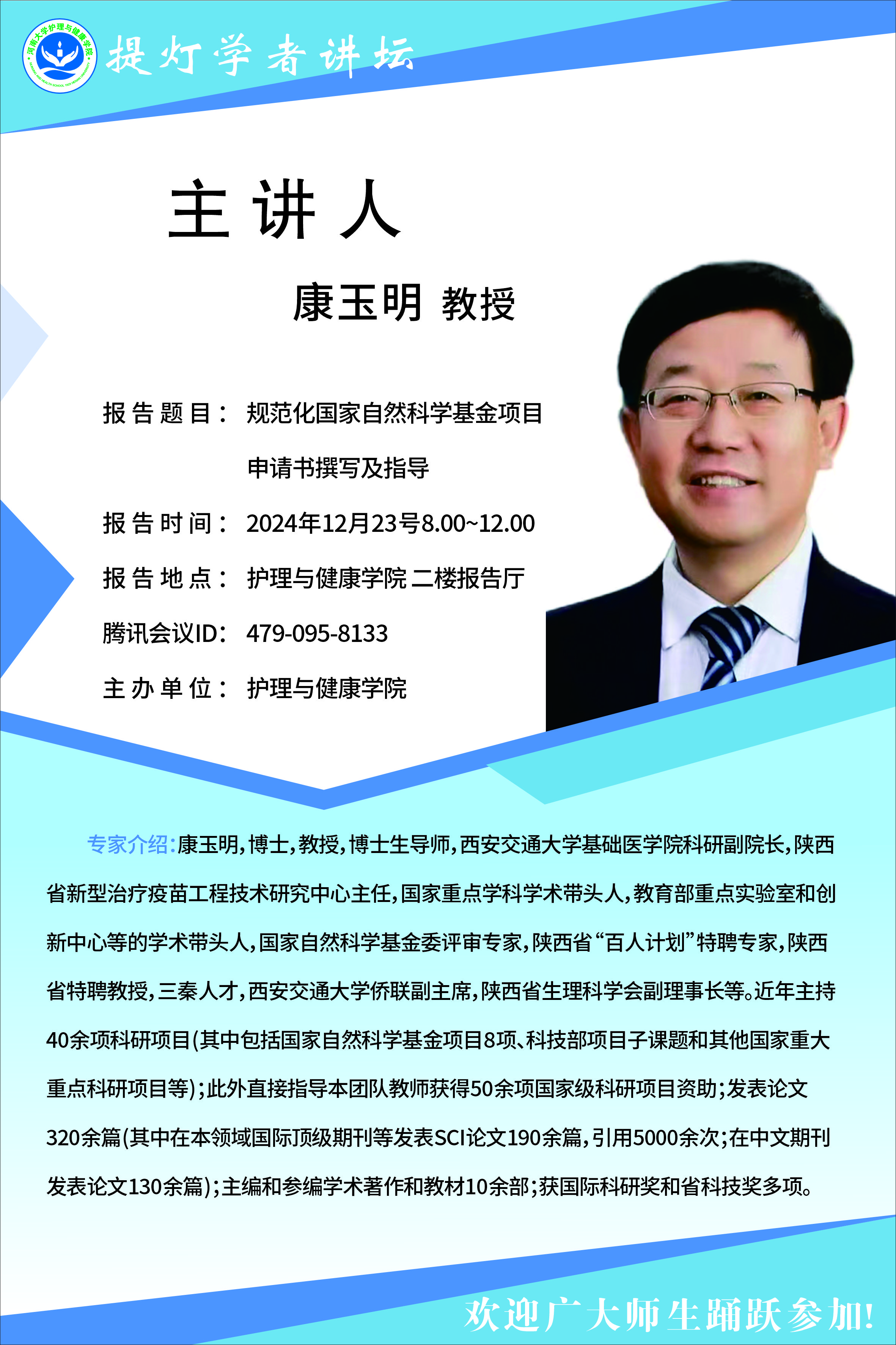 康玉明:规范化国家自然科学基金项目申请书撰写及指导(时间:12月23日)