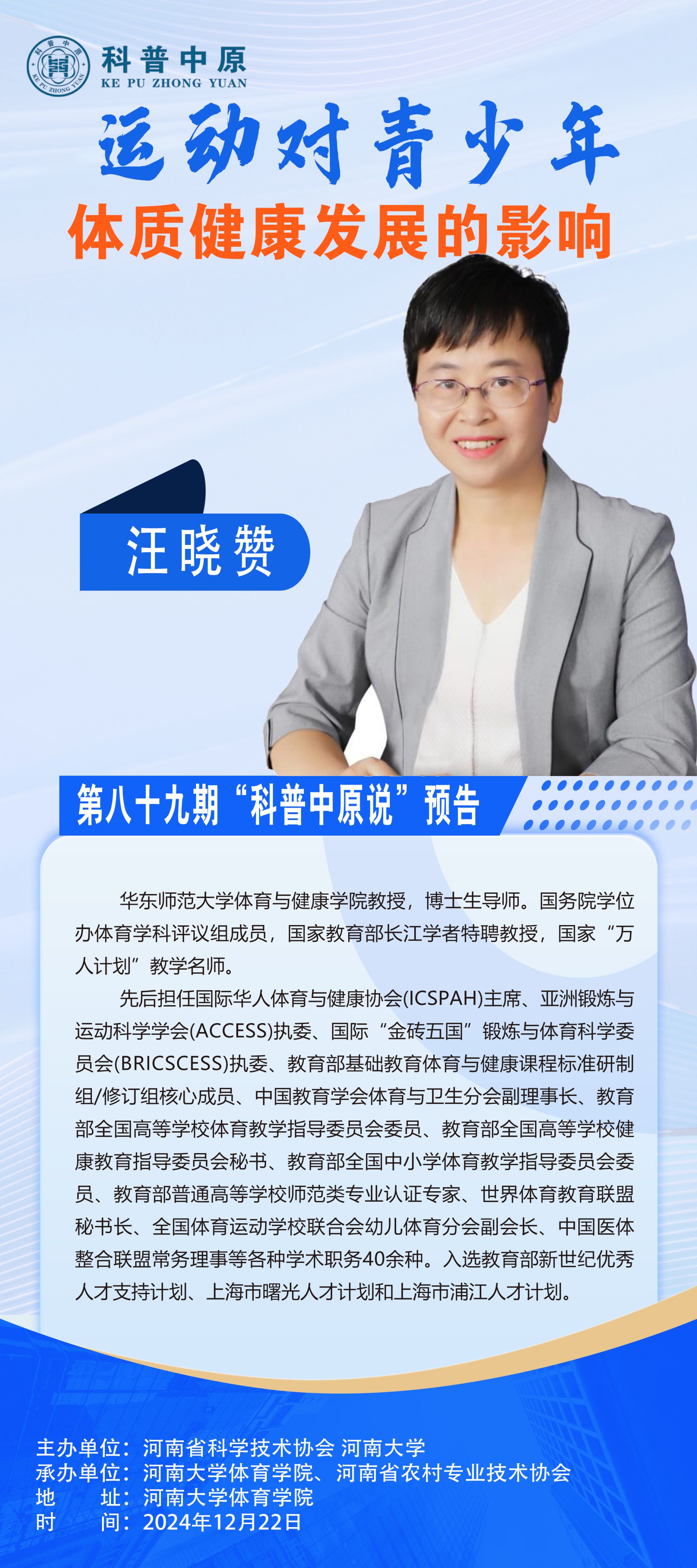 汪晓赞:运动对青少年体质健康发展的影响(时间:12月22日)