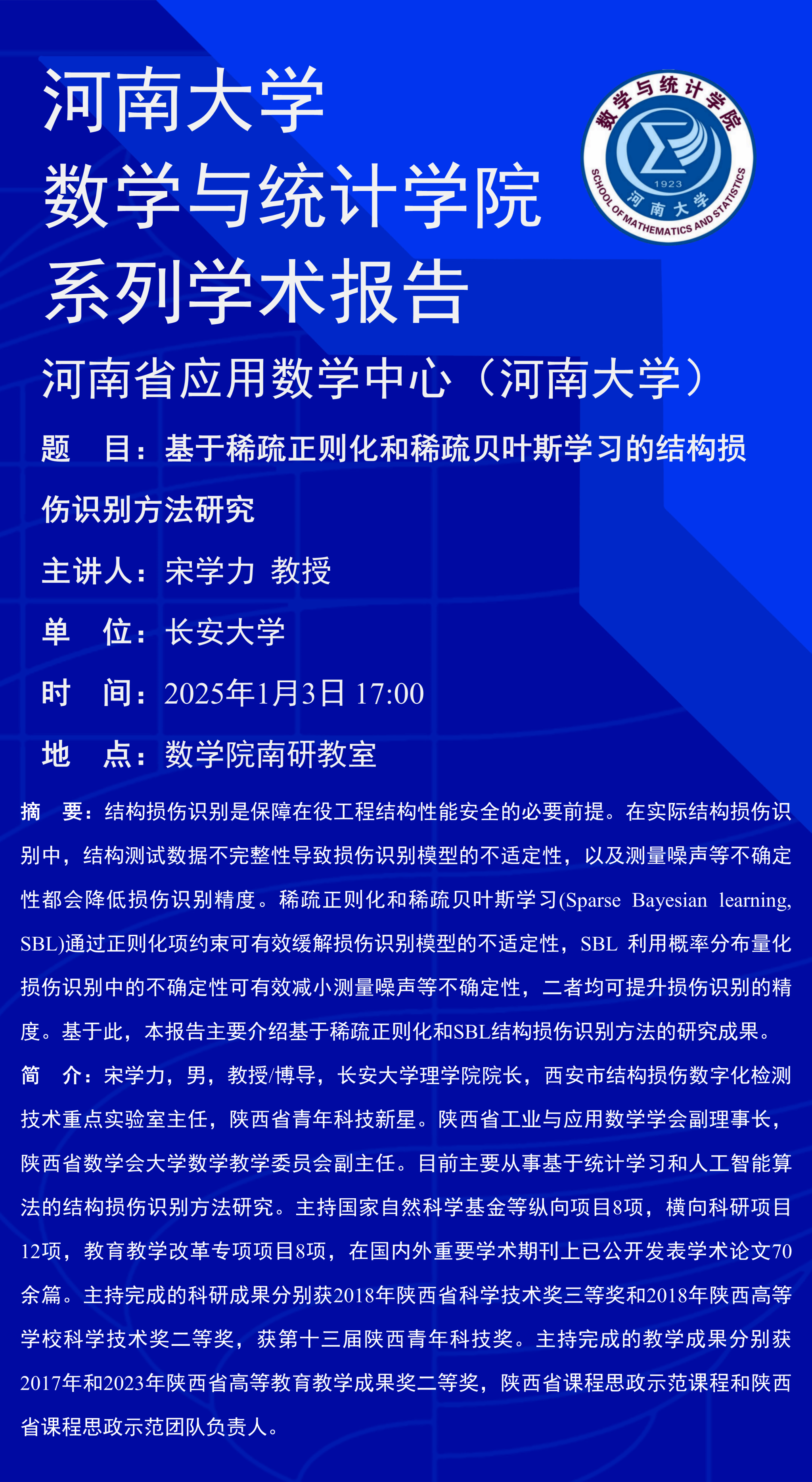 宋学力:基于稀疏正则化和稀疏贝叶斯学习的结构损伤识别方法研究(时间:1月3日)