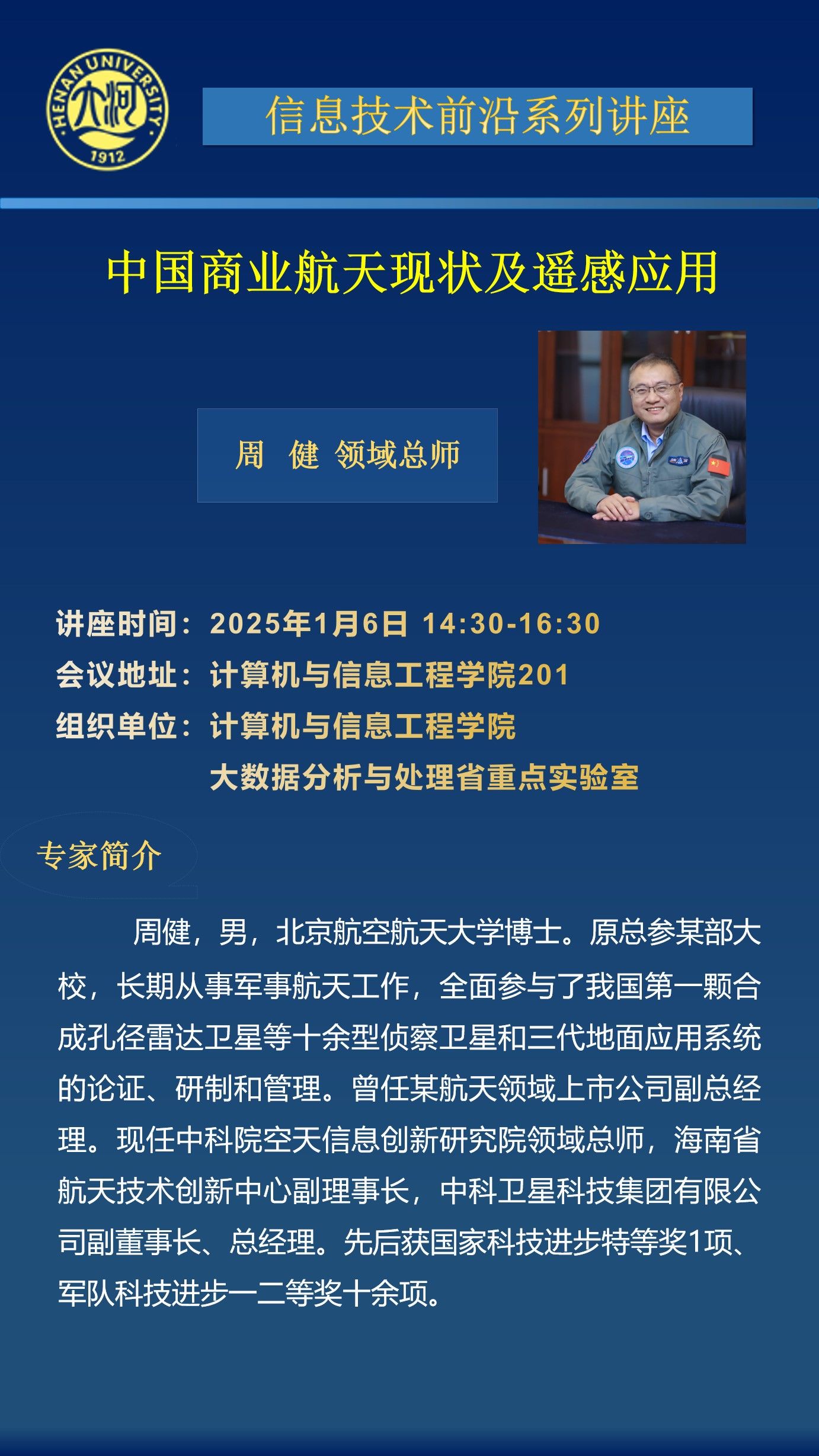 周健:中国商业航天现状及遥感应用(时间:1月6日)