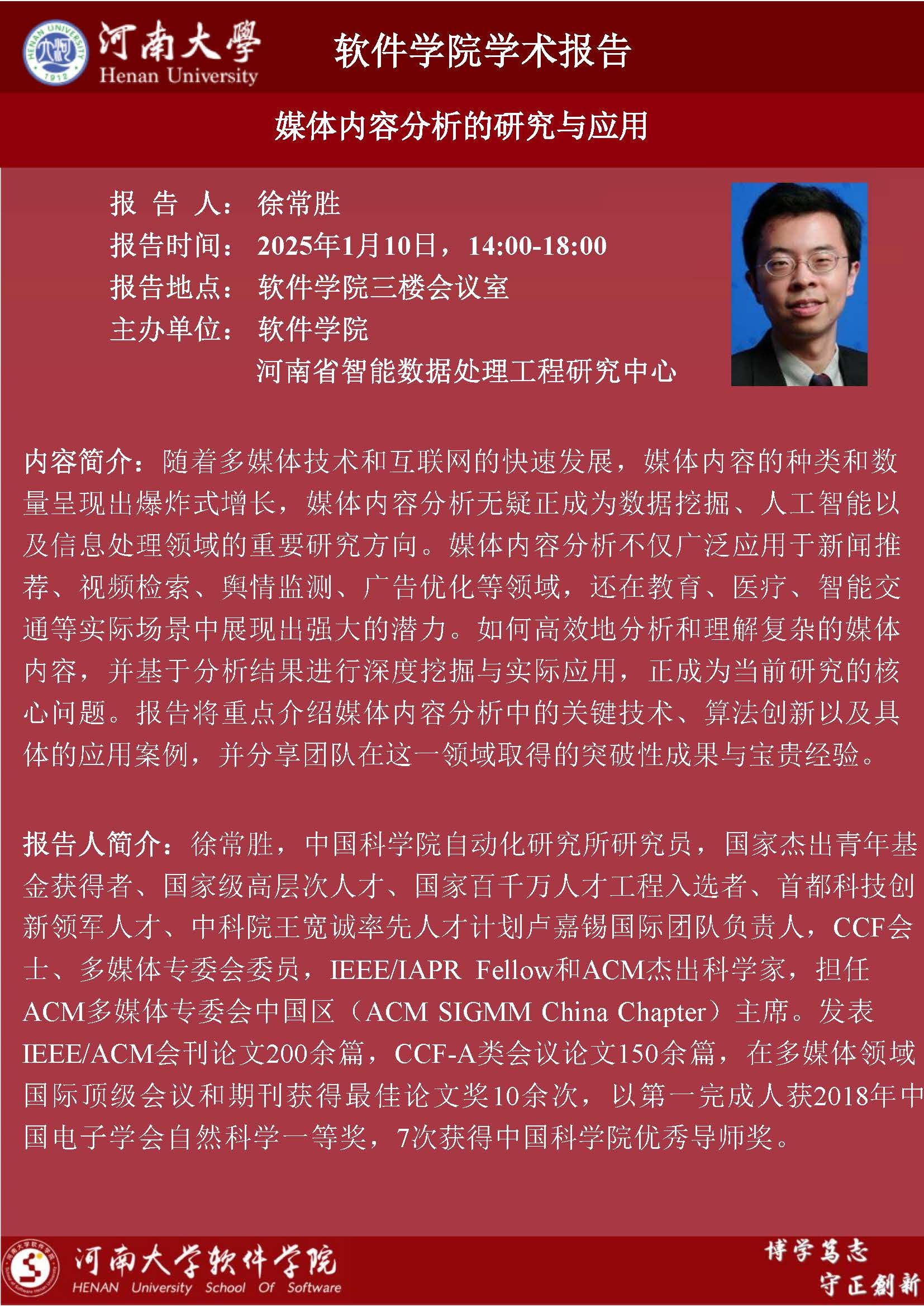徐常胜:媒体内容分析的研究与应用(时间:1月10日)