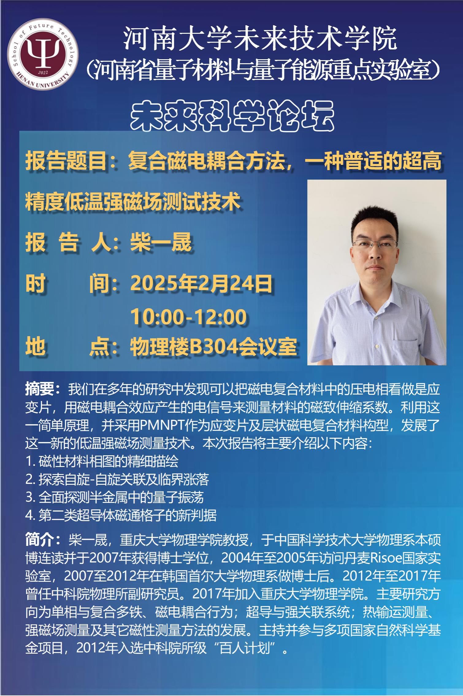 柴一晟:复合磁电耦合方法,一种普适的超高精度低温强磁场测试技术(时间:2月24日)