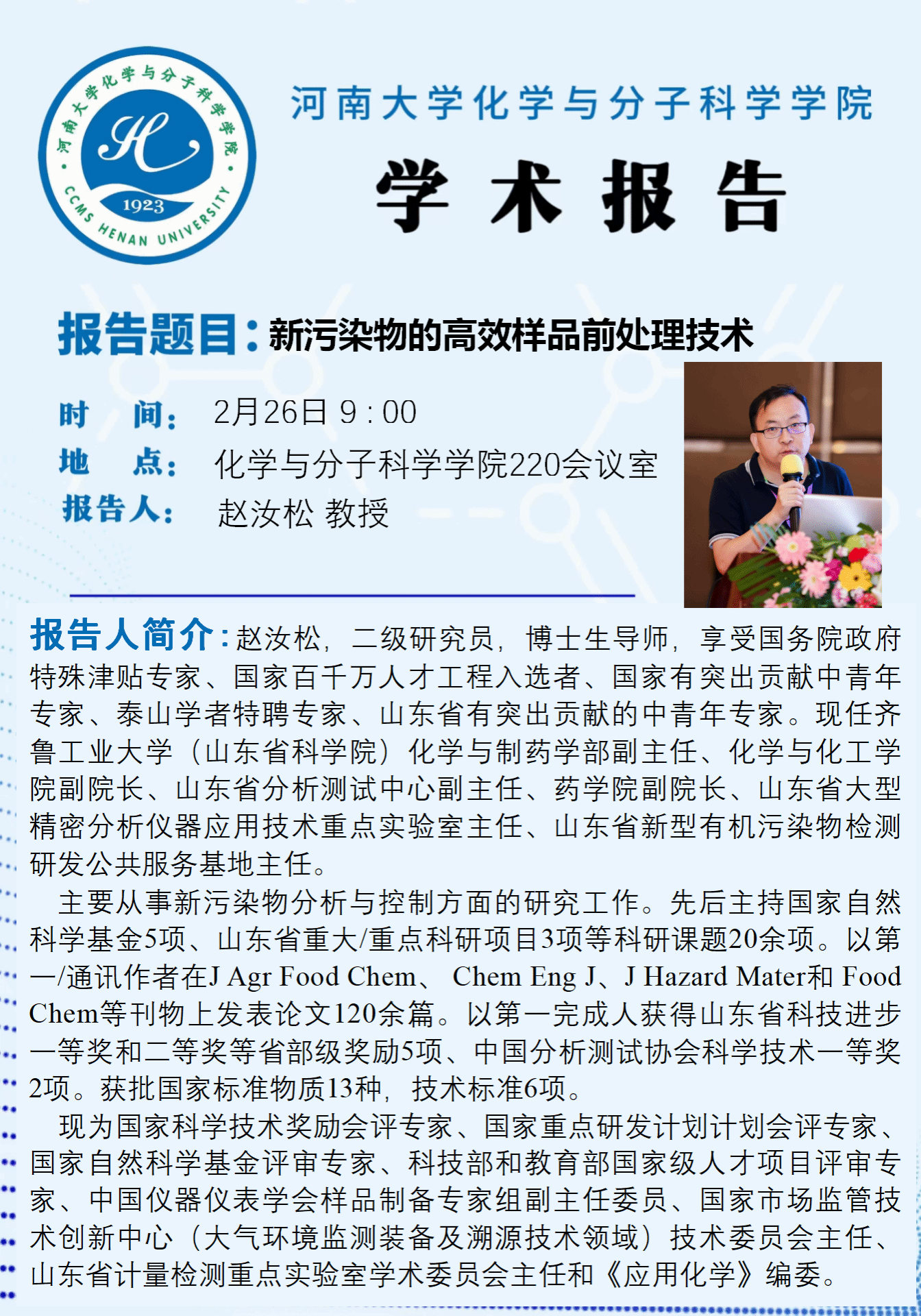 赵汝松:新污染物的高效样品前处理技术(时间:02月26日)