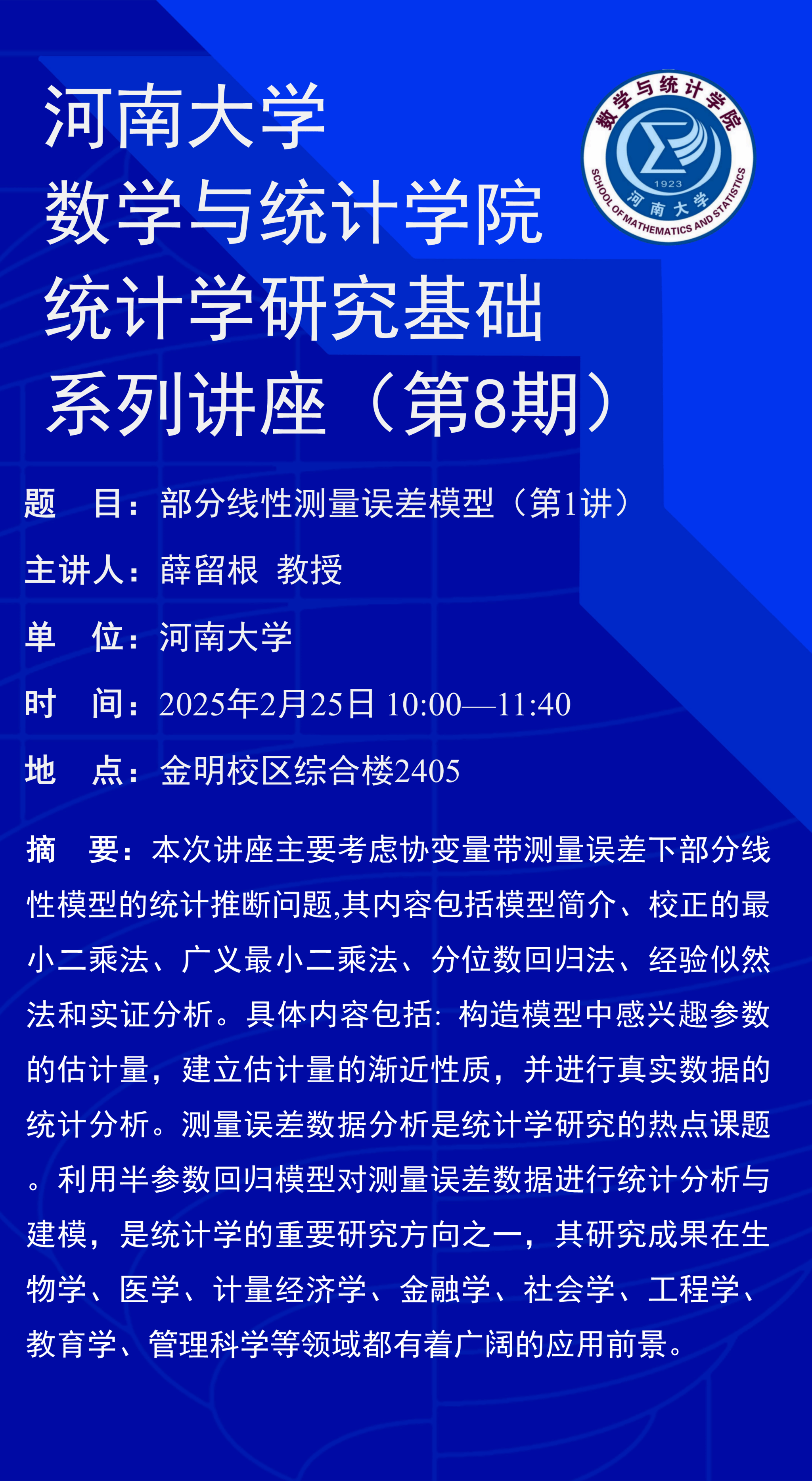 薛留根:部分线性测量误差模型(第1讲)(时间:2月25日)