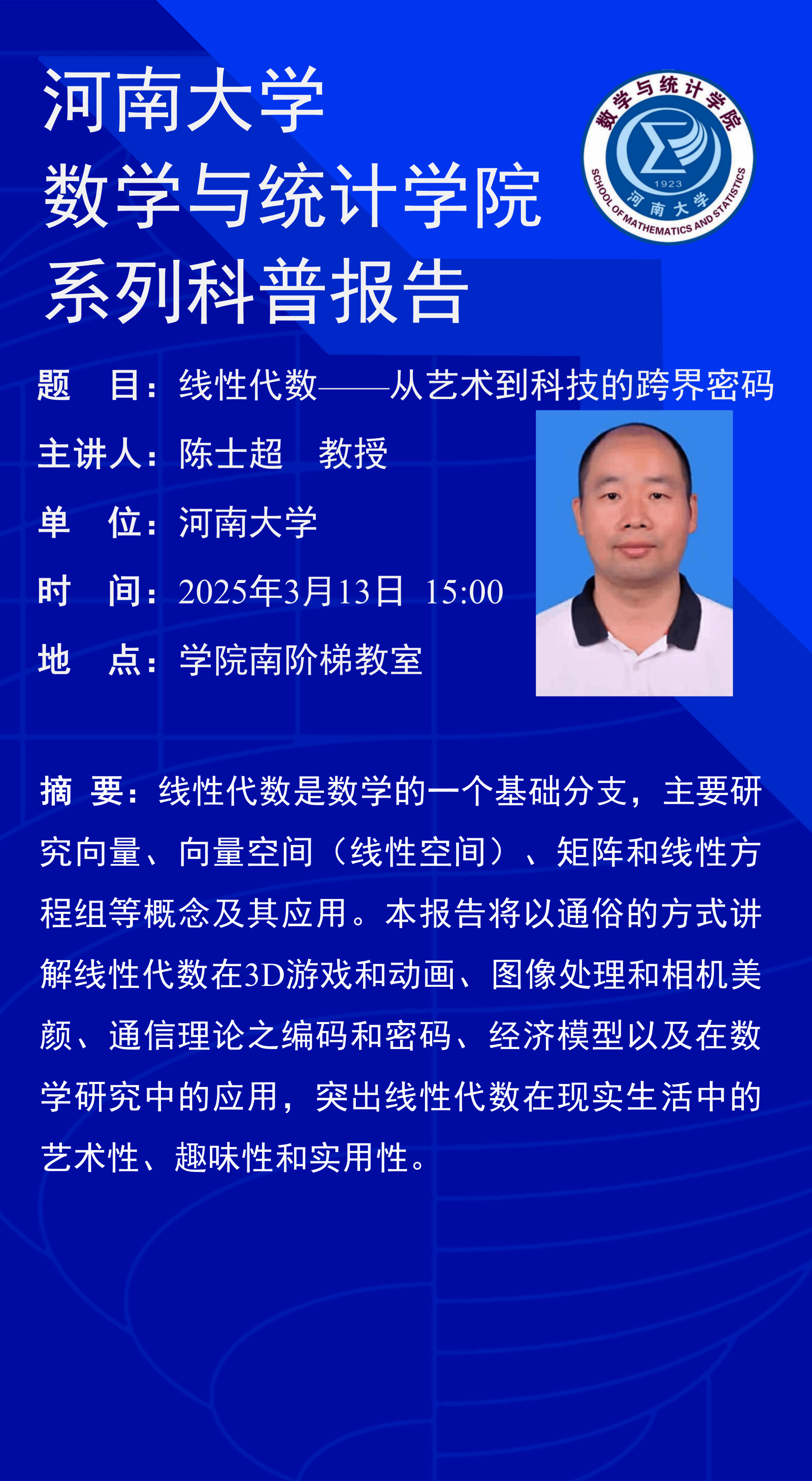 陈士超:线性代数—从艺术到科技的跨界密码(时间:3月13日)