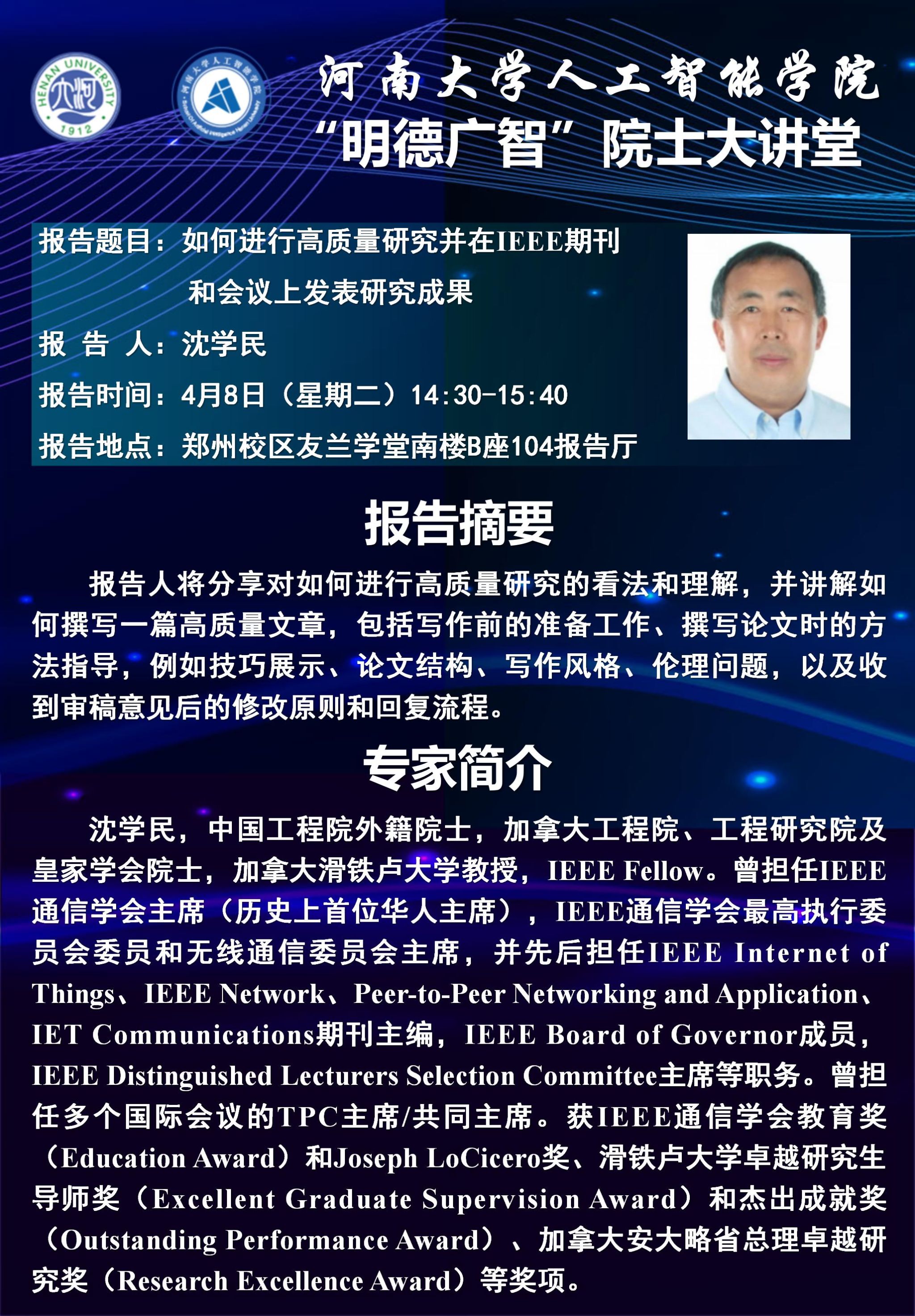 沈学民:如何进行高质量研究并在IEEE期刊和会议上发表研究成果(时间:4月8日)