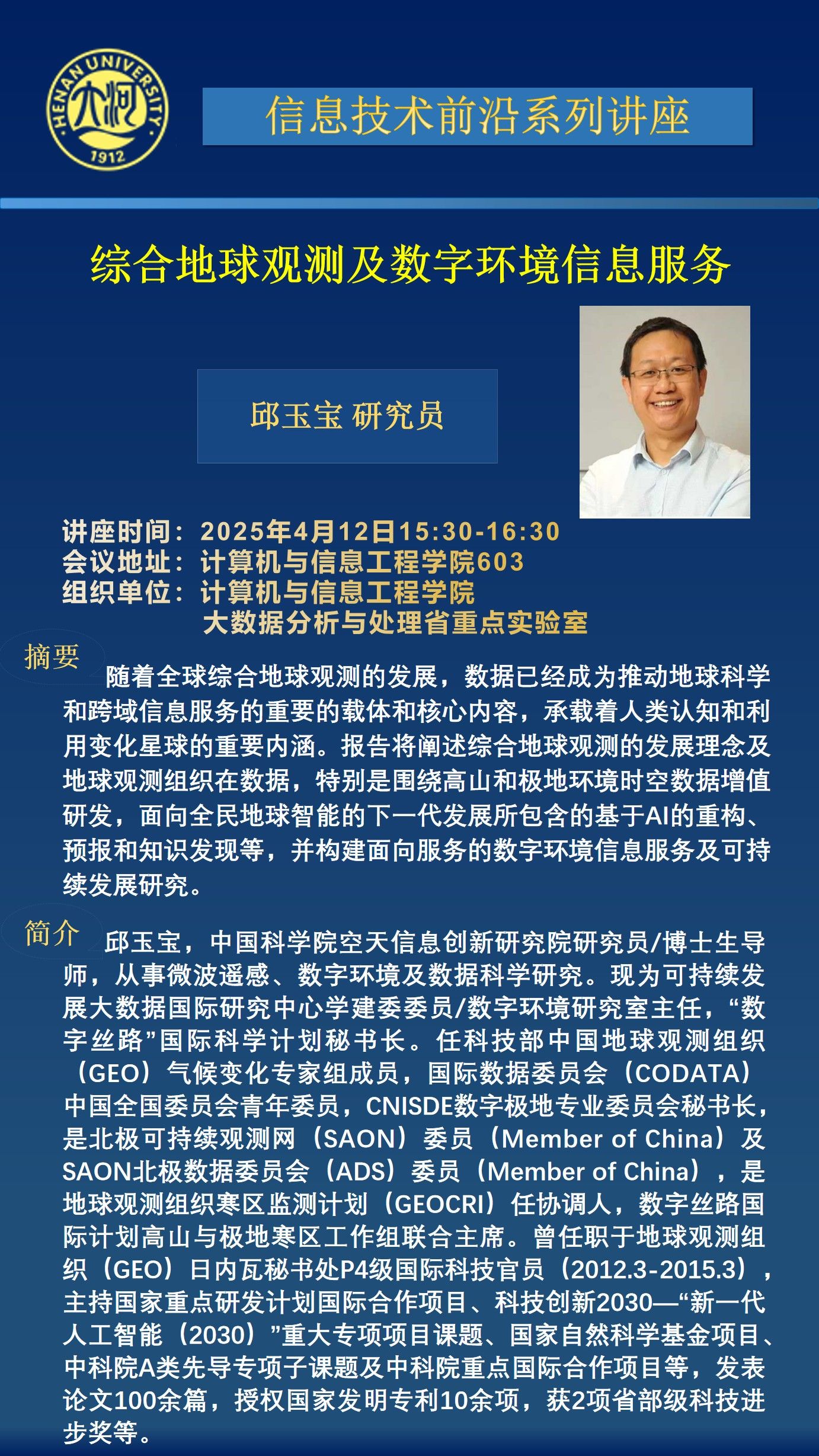 邱玉宝:综合地球观测及数字环境信息服务(时间:4月12日)