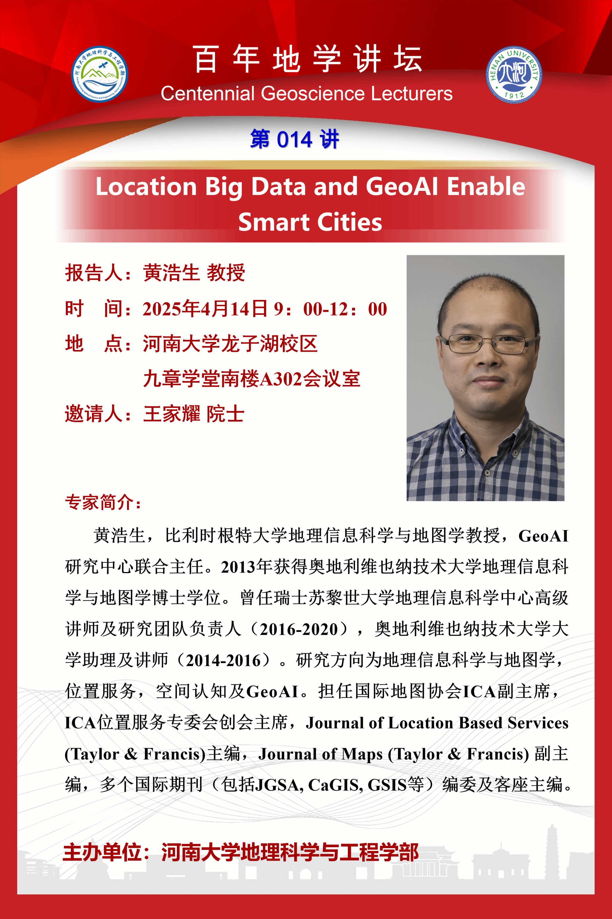 黄浩生:Location Big Data and GeoAI Enable Smart Cities(时间:4月14日)