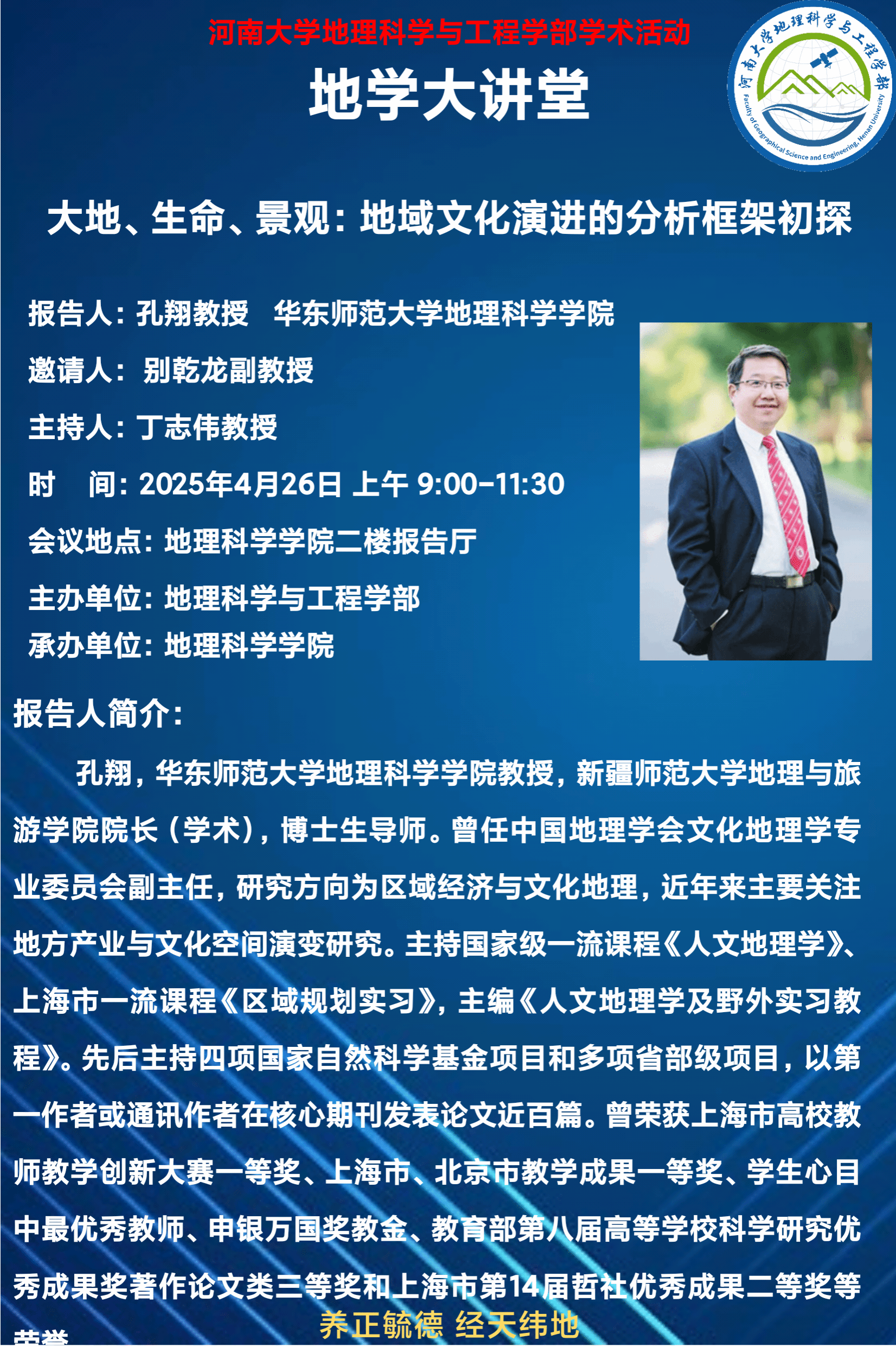 孔翔:大地、生命、景观:地域文化演进的分析框架初探(时间:4月26日)