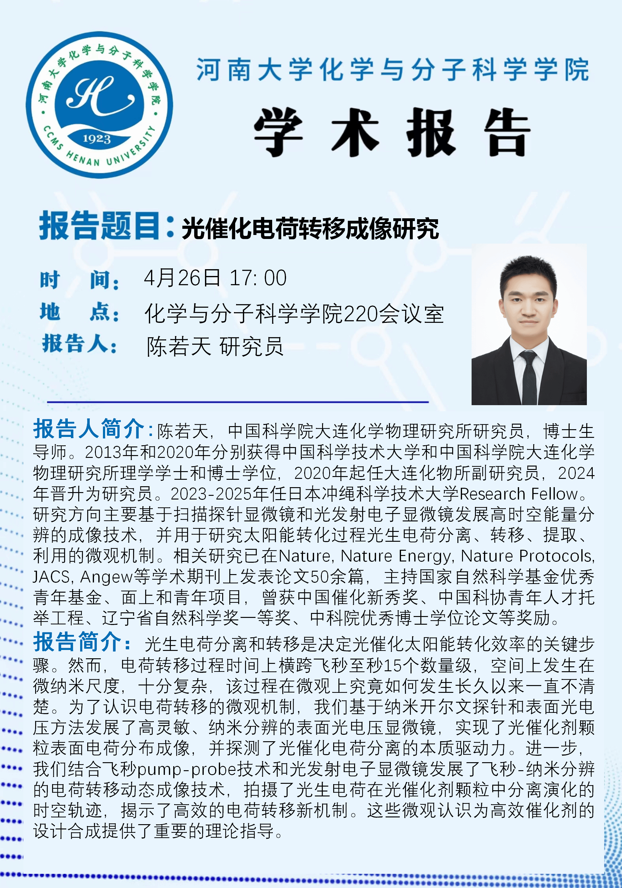 陈若天:光催化电荷转移成像研究(时间:4月26日)