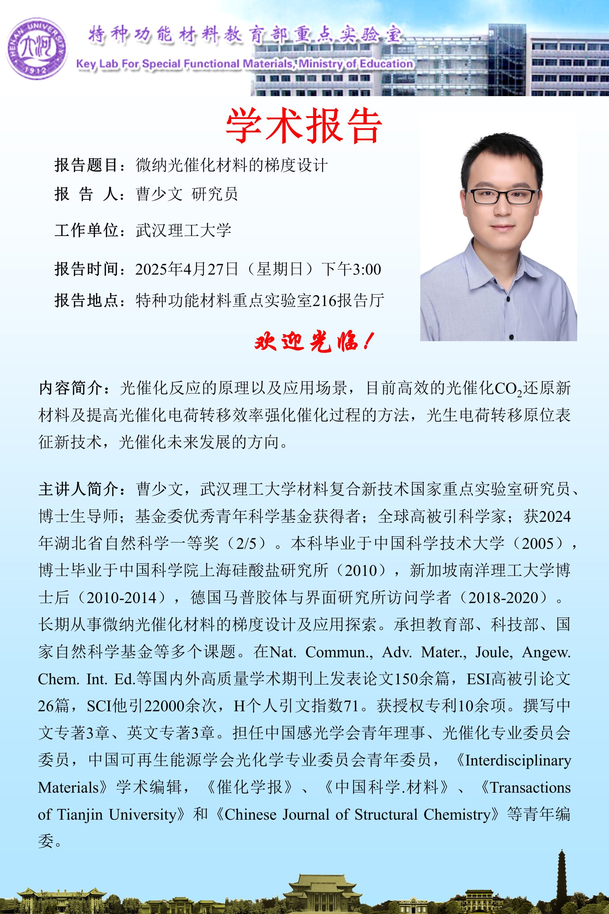 曹少文:微纳光催化材料的梯度设计(时间:4月27日)