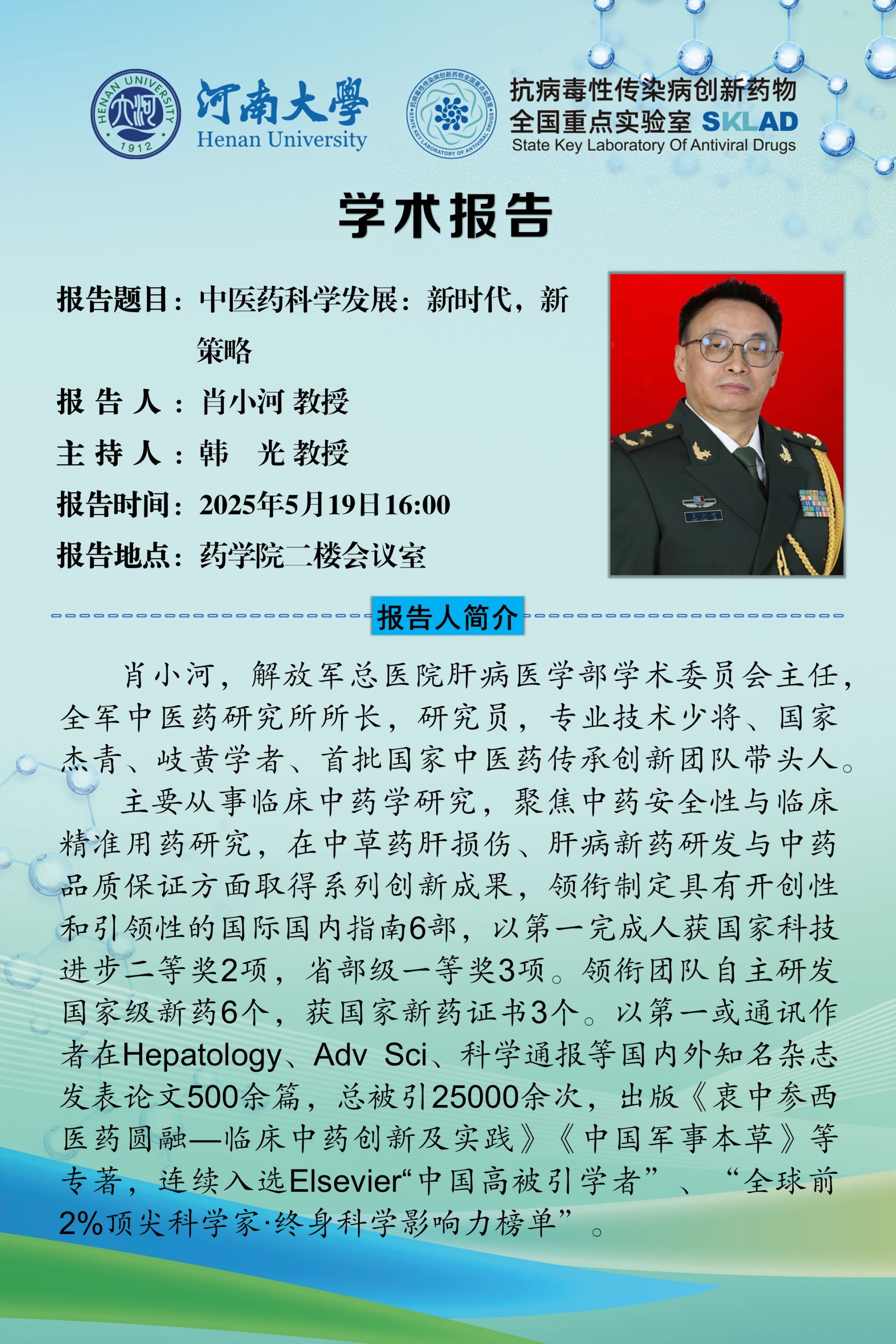 肖小河: 中医药科学发展: 新时代,新策略(时间:5月19日)