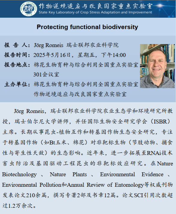 Jörg Romeis :Protecting functional biodiversity(时间:5月16日)