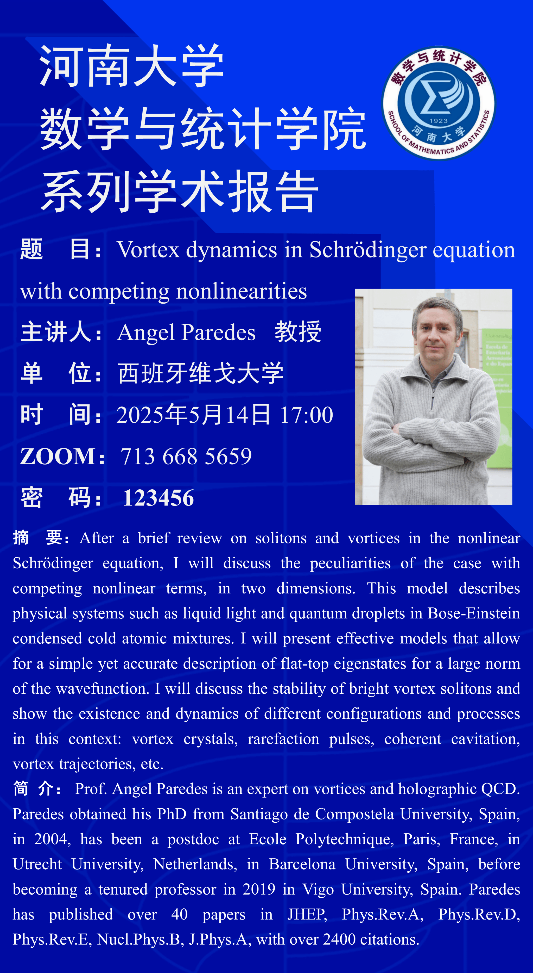 Angel Paredes:Vortex dynamics in Schrödinger equation with competing nonlinearities(时间:5月14日)