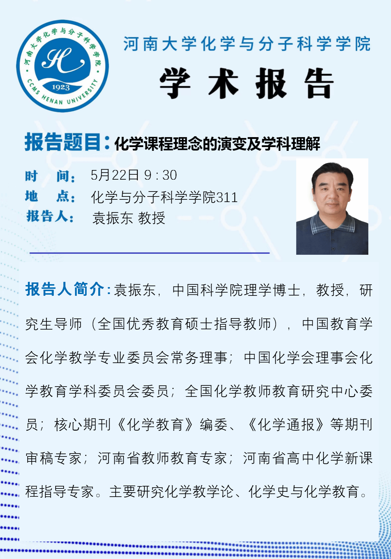 袁振东:化学课程理念的演变及学科理解(时间:5月22日)