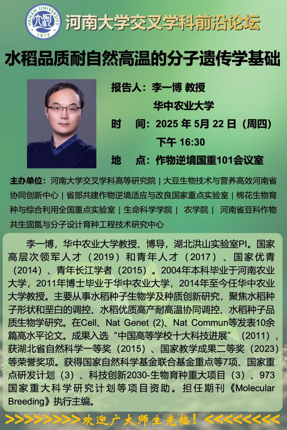 李一博:水稻品质耐自然高温的分子遗传学基础(时间:5月22日)