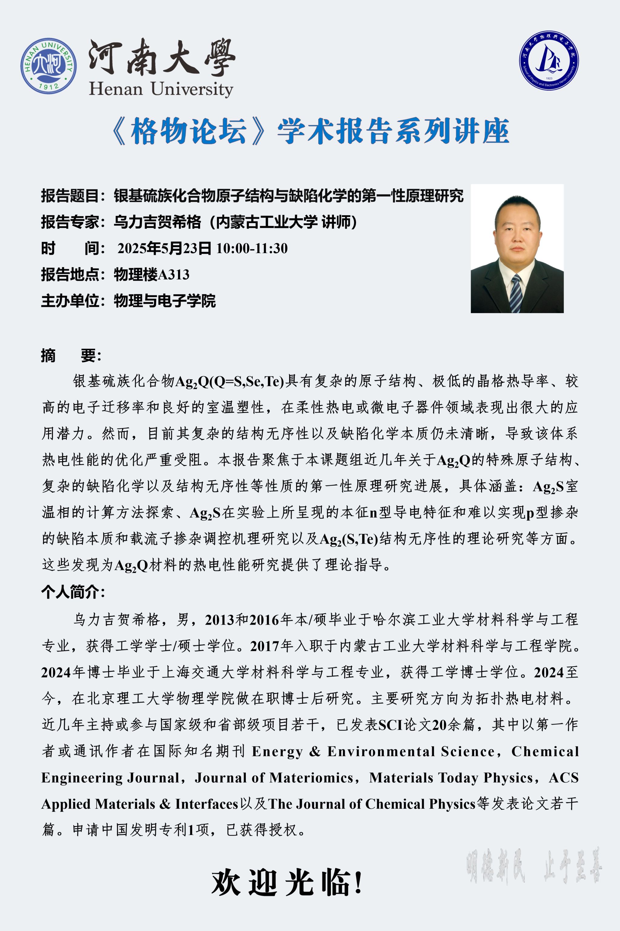 乌力吉贺希格:银基硫族化合物原子结构与缺陷化学的第一性原理研究(时间:5月23日)