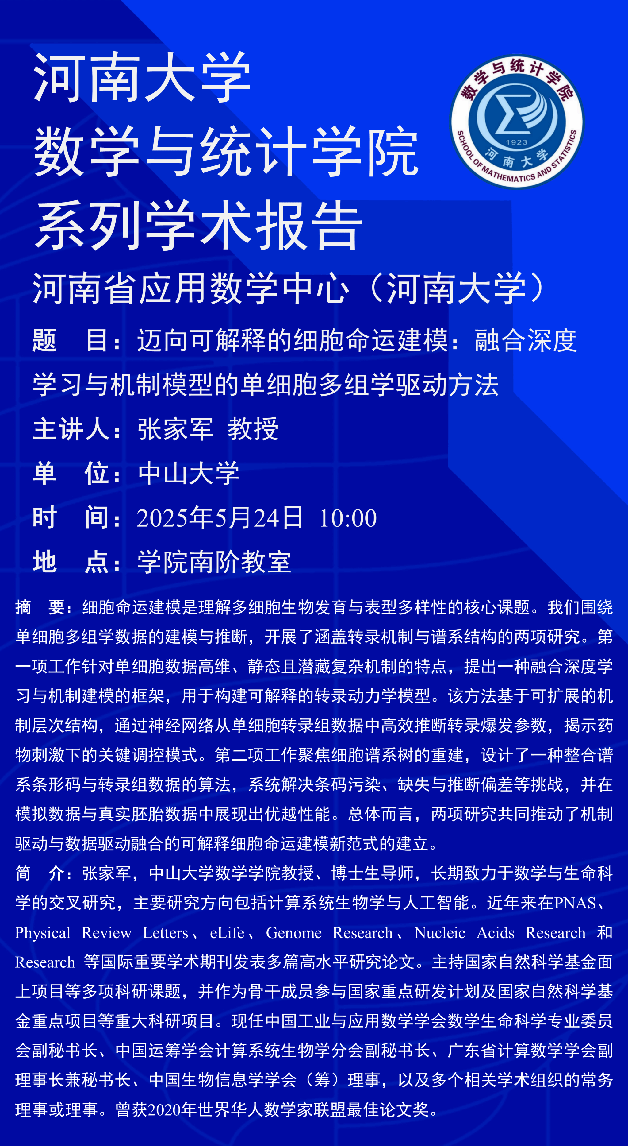 张家军:迈向可解释的细胞命运建模:融合深度学习与机制模型的单细胞多组学驱动方法(时间:5月24日)
