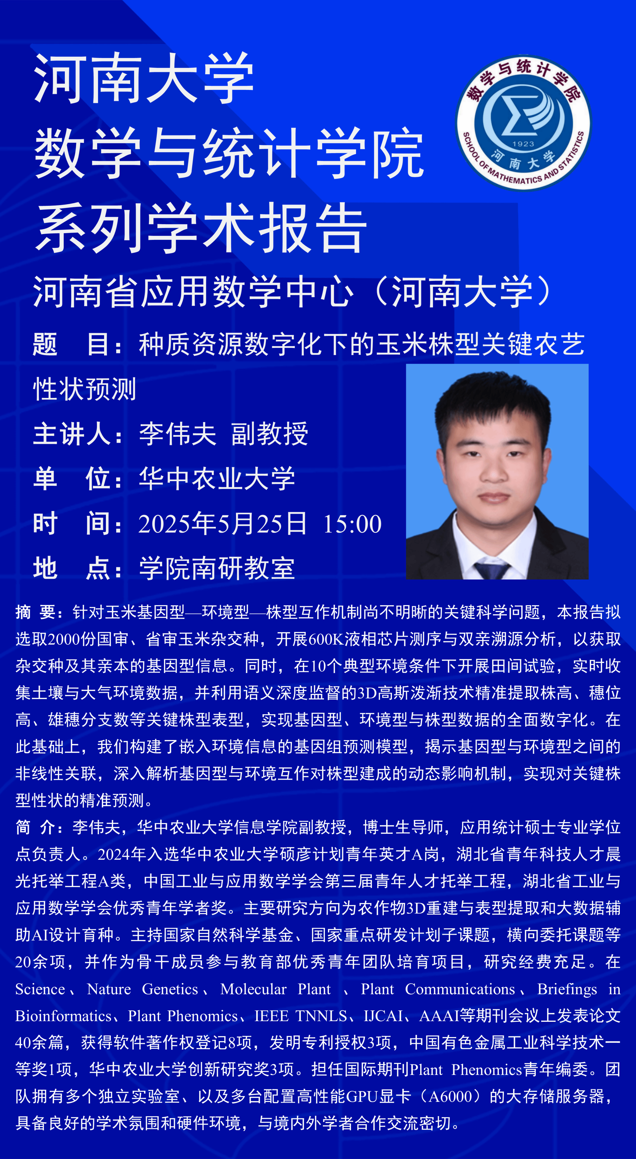 李伟夫:种质资源数字化下的玉米株型关键农艺性状预测(时间:5月25日)