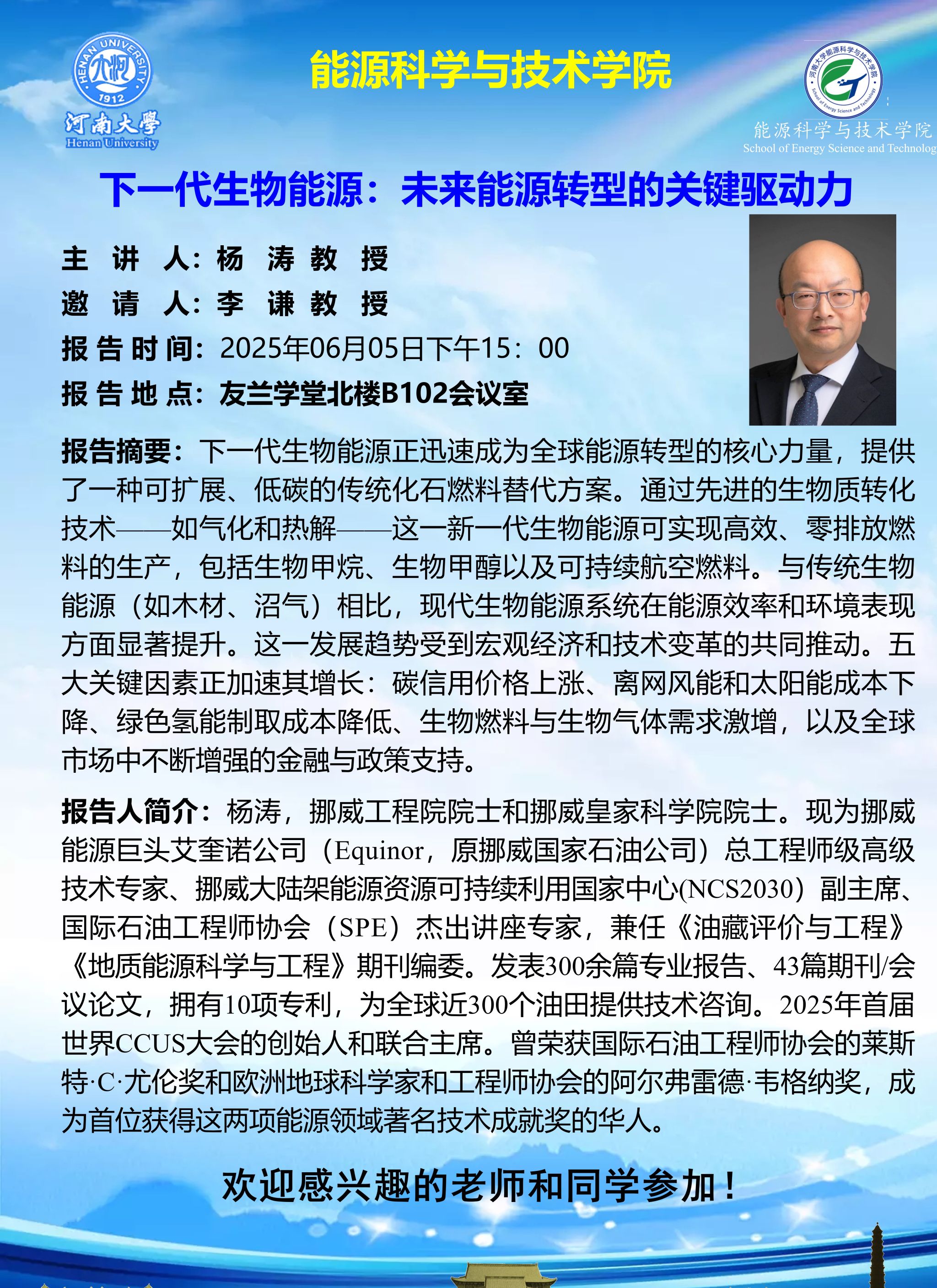 杨涛:下一代生物能源:未来能源转型的关键驱动力(时间:6月5日)