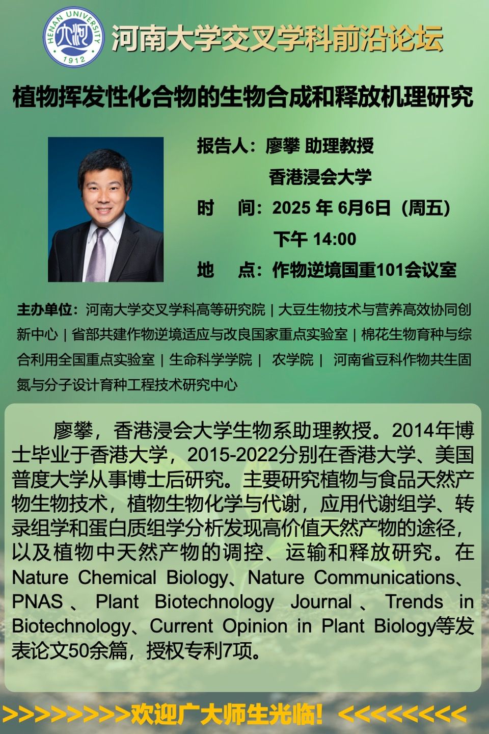 廖攀:植物挥发性化合物的生物合成和释放机理研究(时间:6月6日)