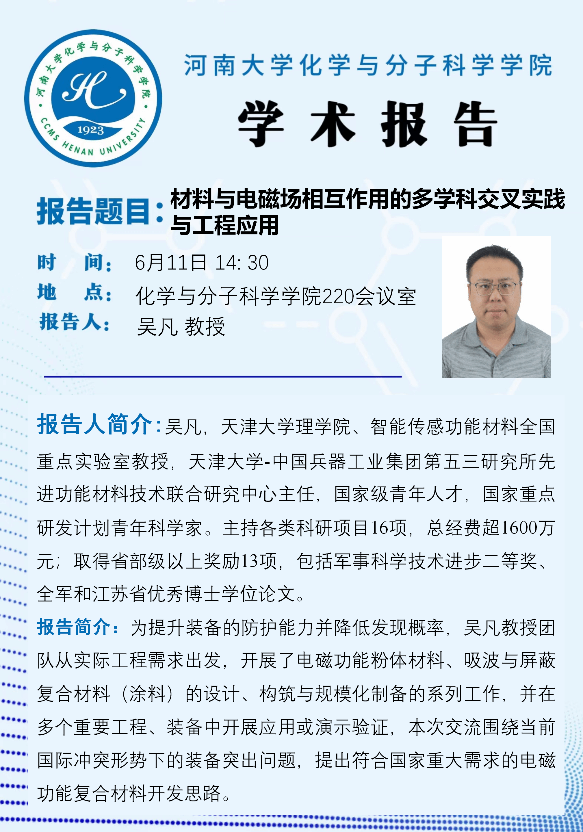 吴凡:材料与电磁场相互作用的多学科交叉实践与工程应用(时间:6月11日)