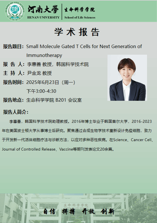 李惠善:Small Molecule Gated T Cells for Next Generation of Immunotherapy(时间:6月23日)