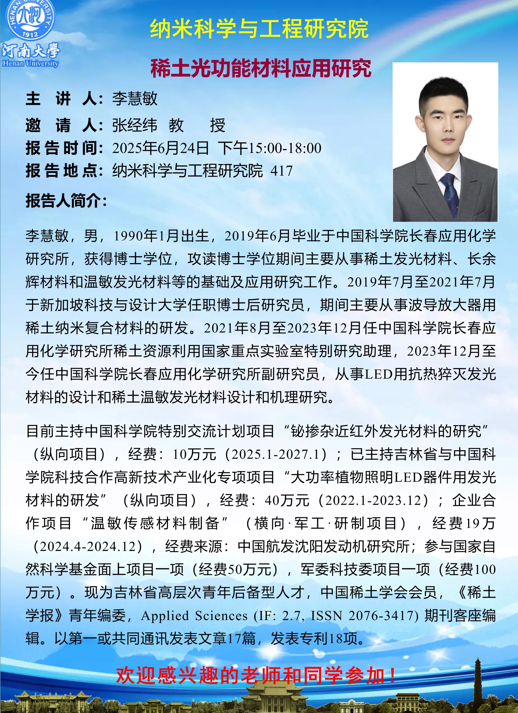 李慧敏:稀土光功能絵幔閩材料应用研究(时间:6月24日)