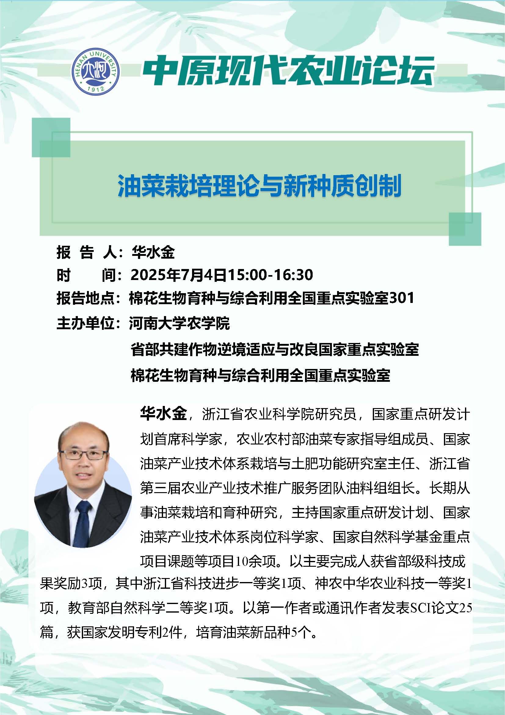 华水金:油菜栽培理论与新种质创制(时间:7月4日)