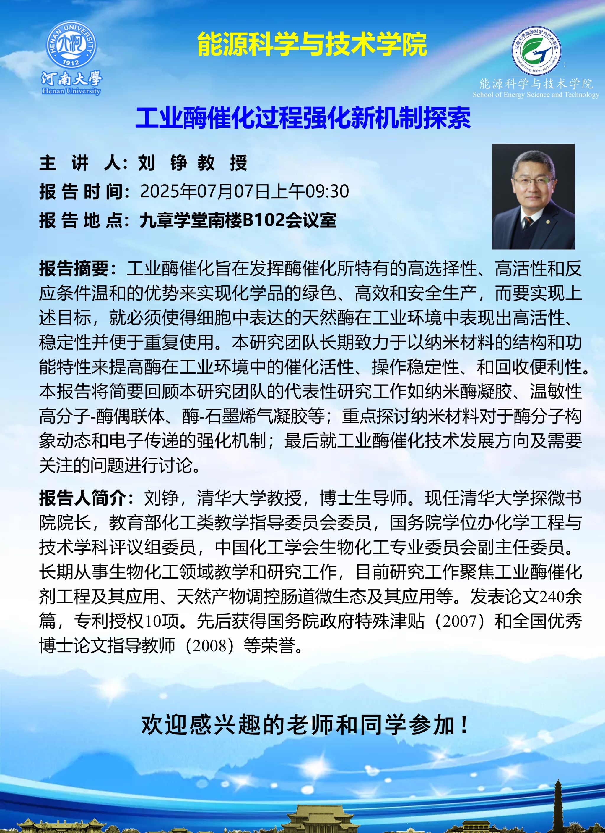 刘铮:工业酶催化过程强化新机制探索(时间:7月7日)