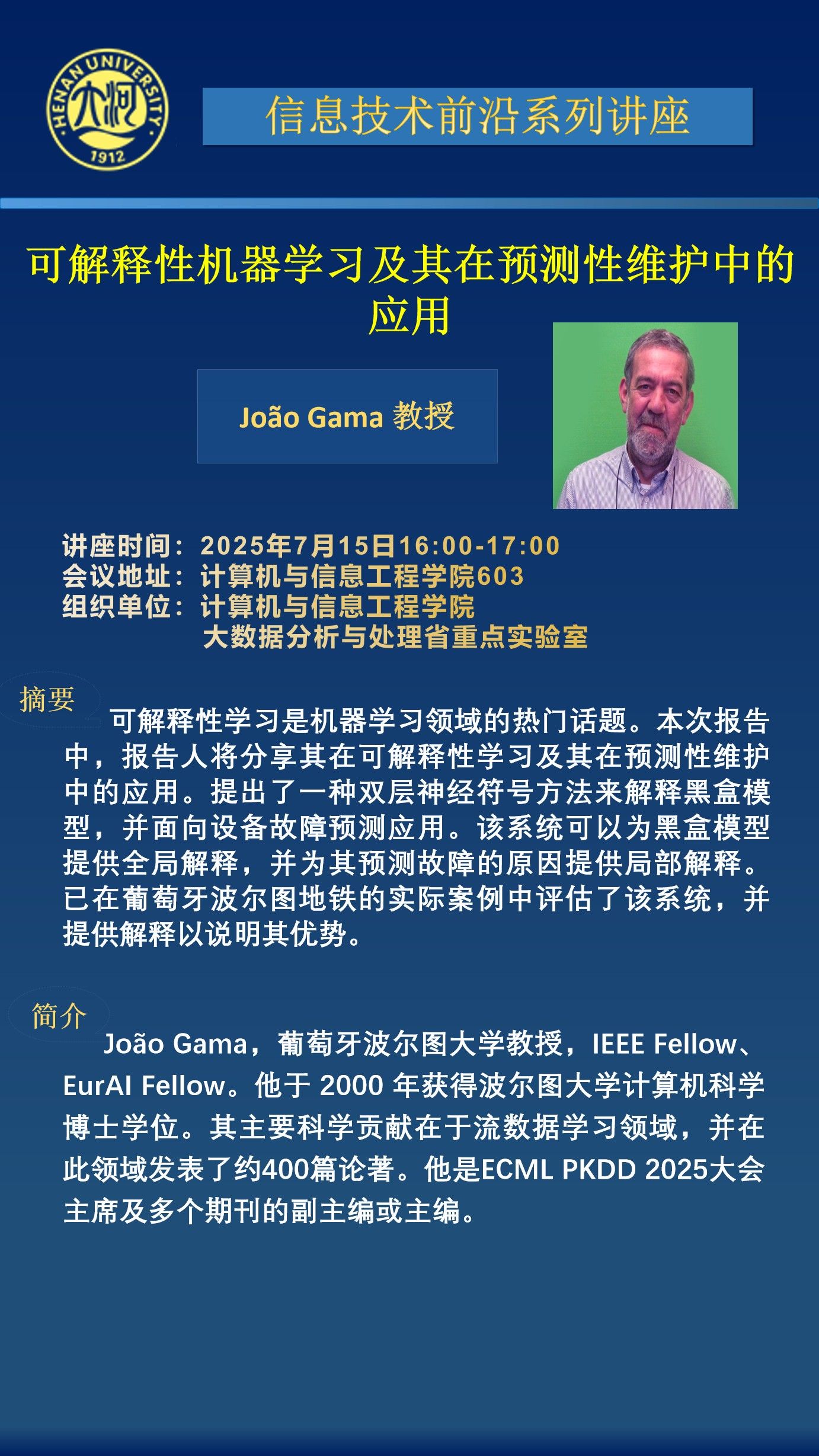 João Gama:可解释性机器学习及其在预测性维护中的应用(时间:7月15日)