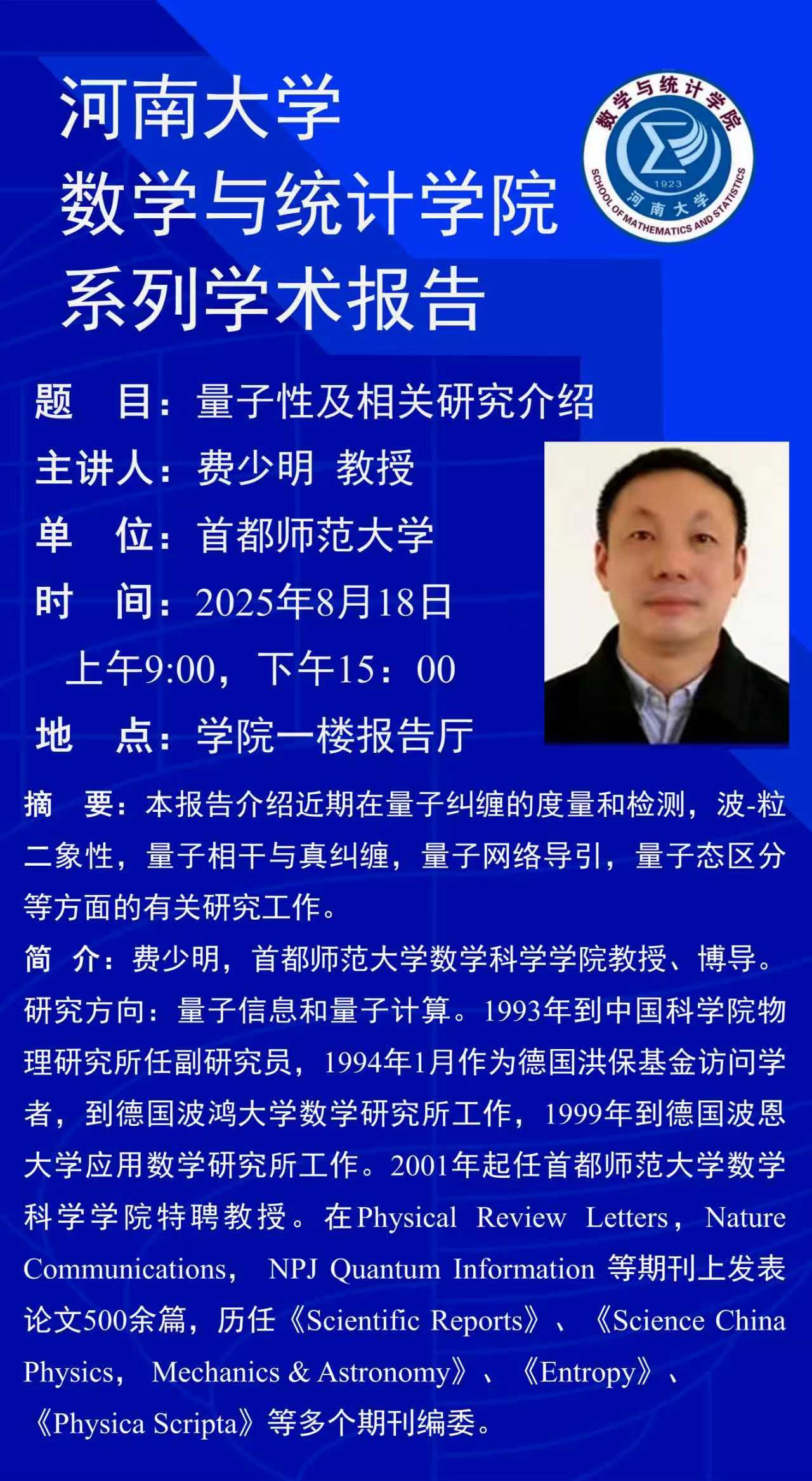 费少明:量子性及相关研究介绍(时间:8月18日)