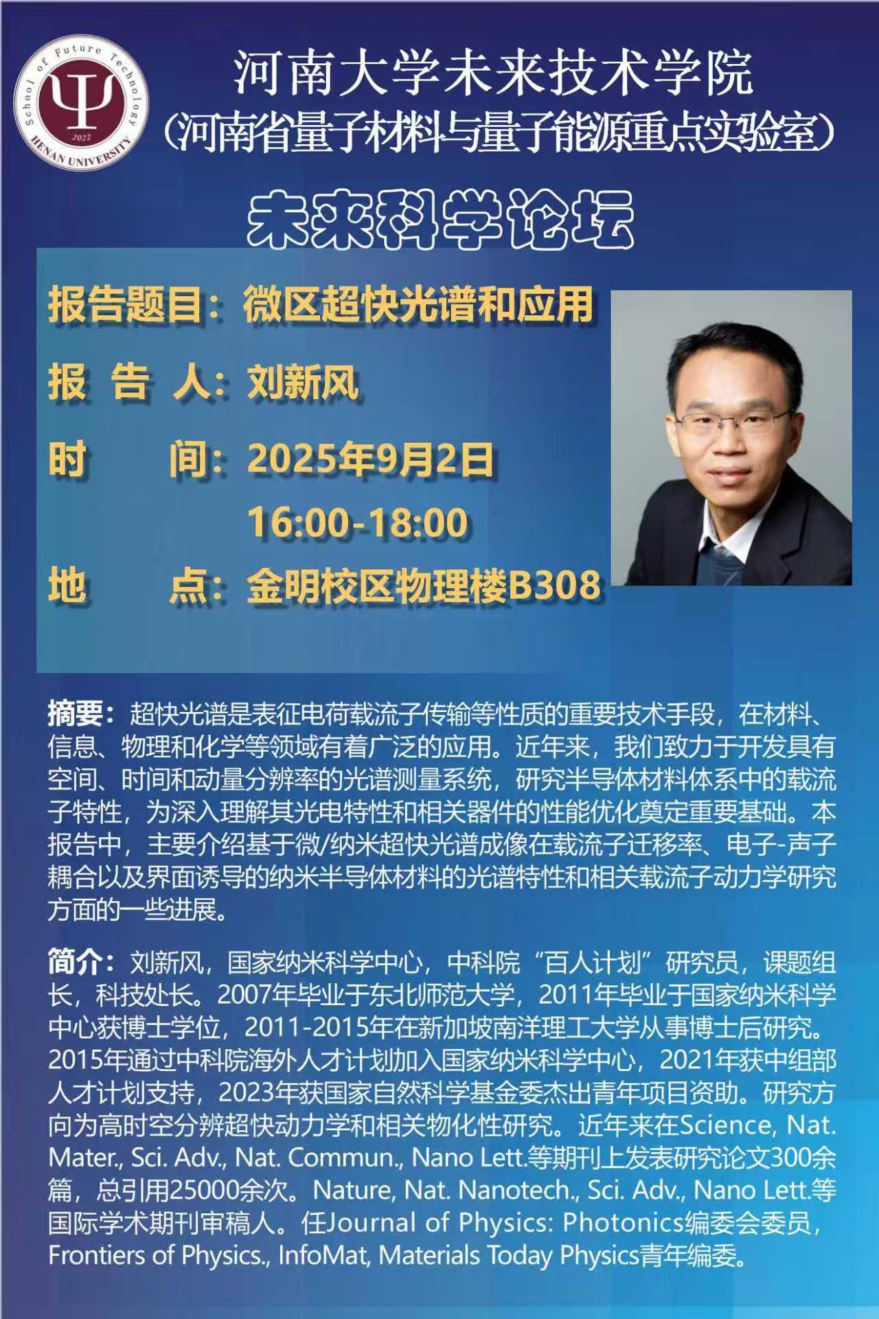 刘新风:微区超快光谱和应用(时间:9月2日)