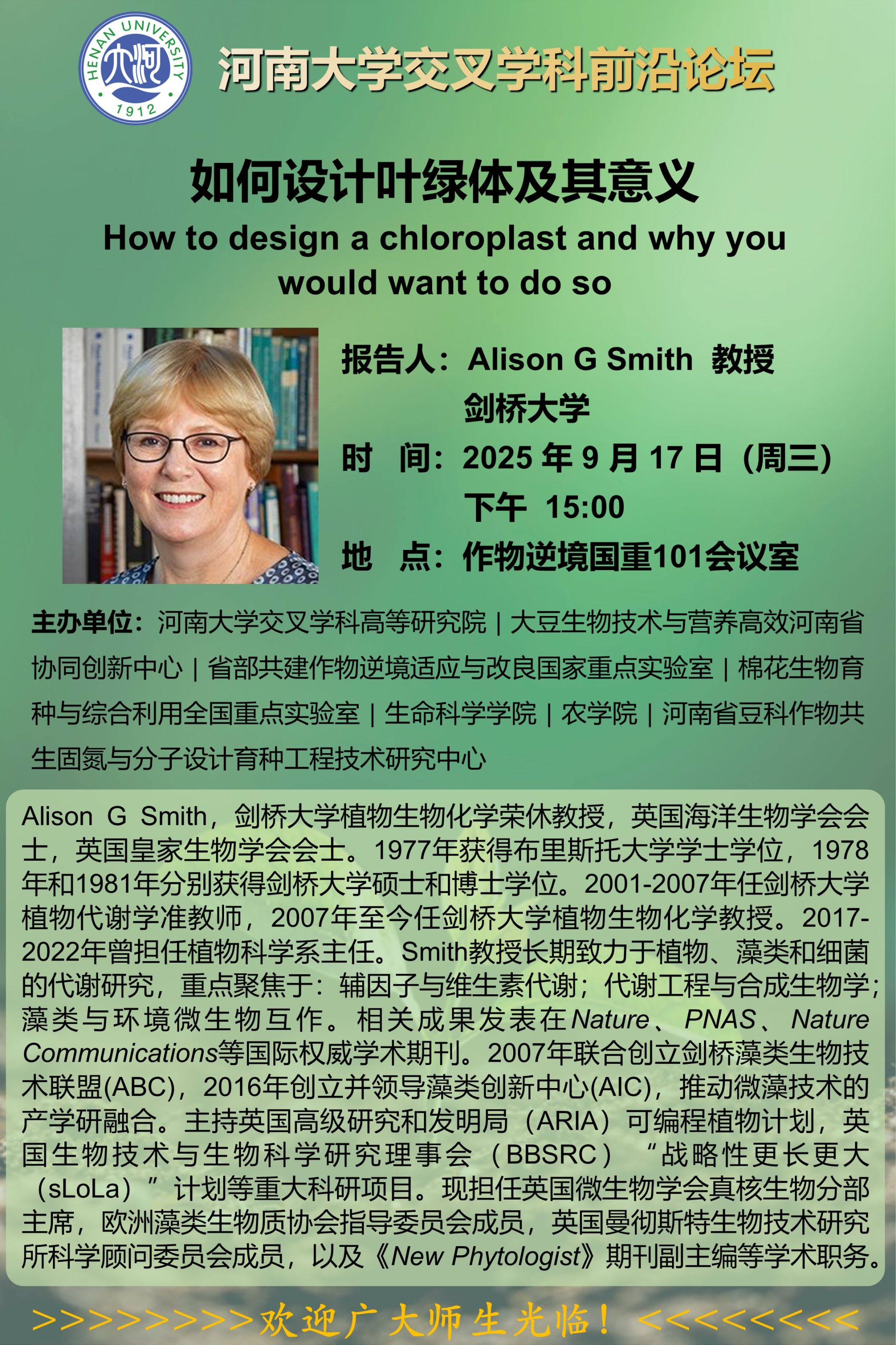 Alison G Smith:How to design a chloroplast and why you would want to do so(时间:9月17日)